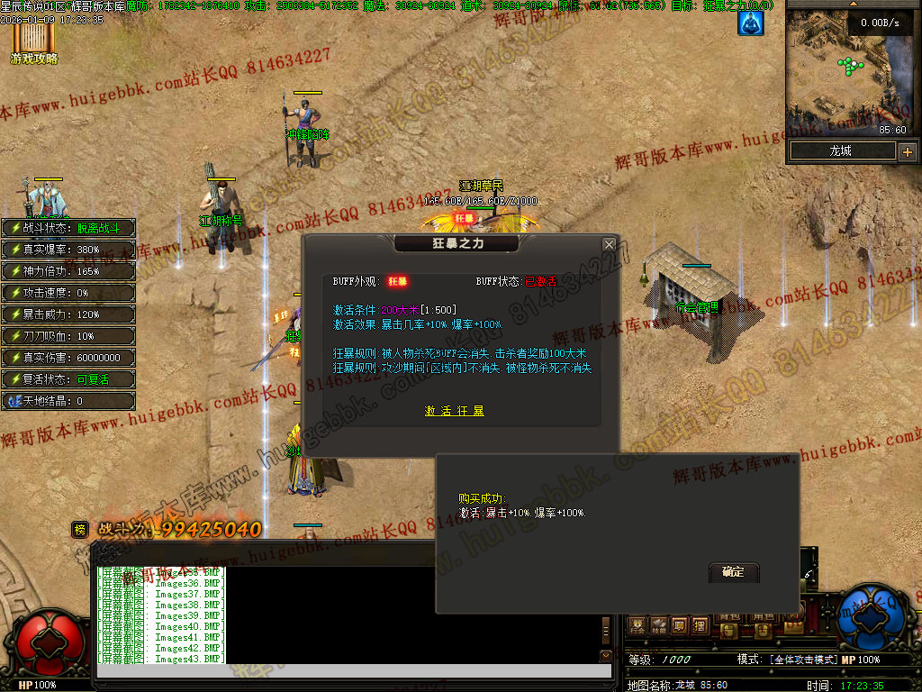 狂暴规则:攻沙期间[区域内]不消失,被怪物杀死不消失——————————————————————————————————沙城捐献:属性:爆率100%属性:伤害10%属性:吸血10%激活:自动回收功能——————————————————————————————————福利【主打一个良心】:免费领取狮子吼[全屏引怪]效果:嘲讽引怪范围20x20.自带红绿毒.