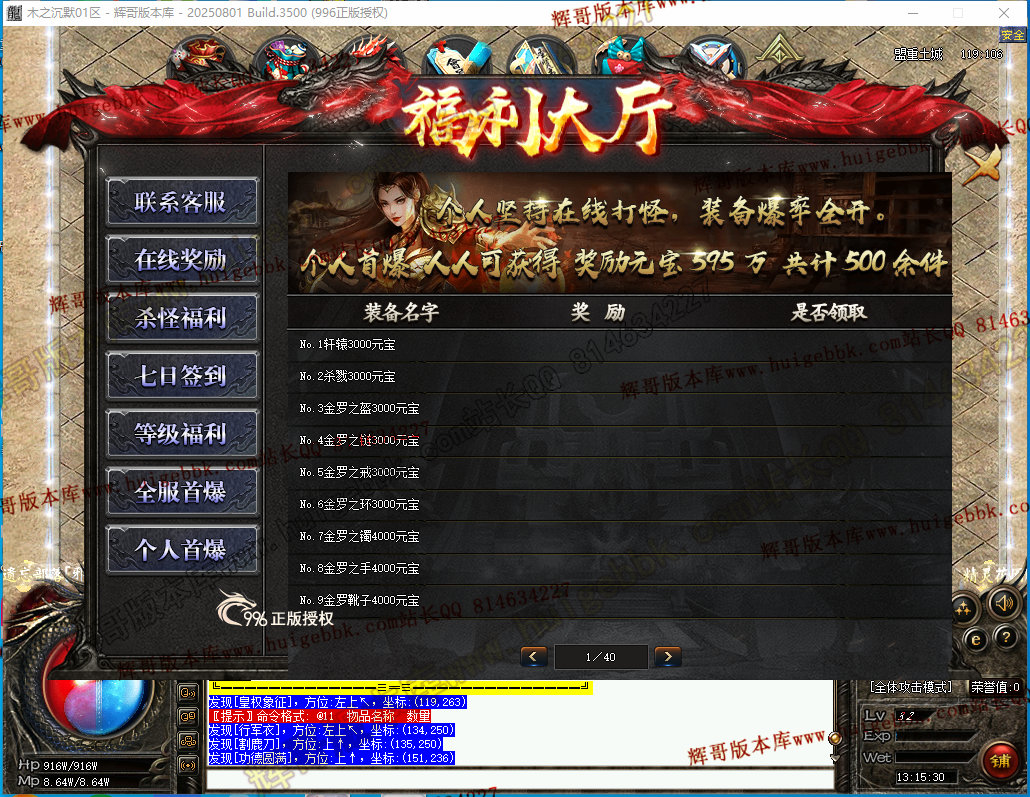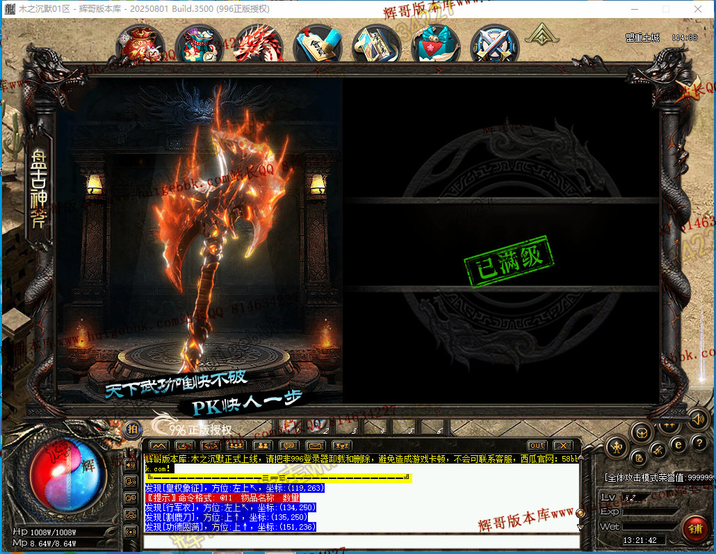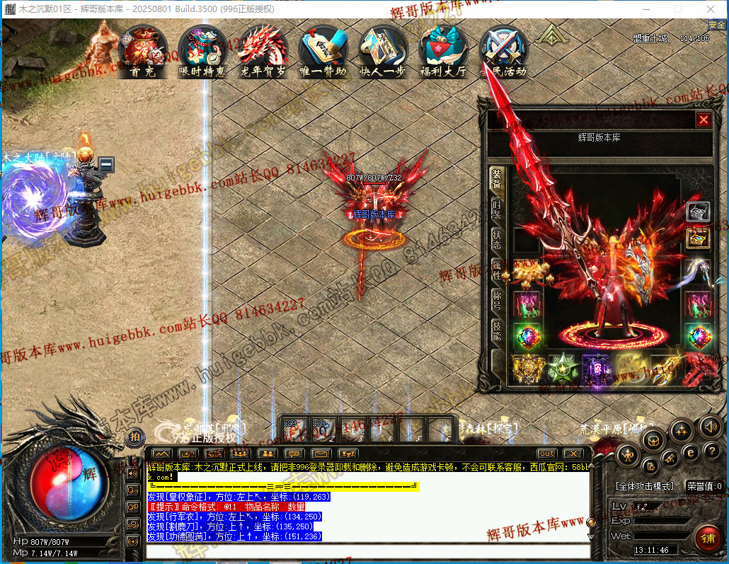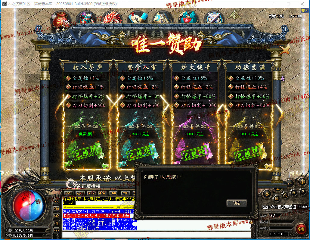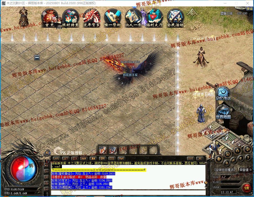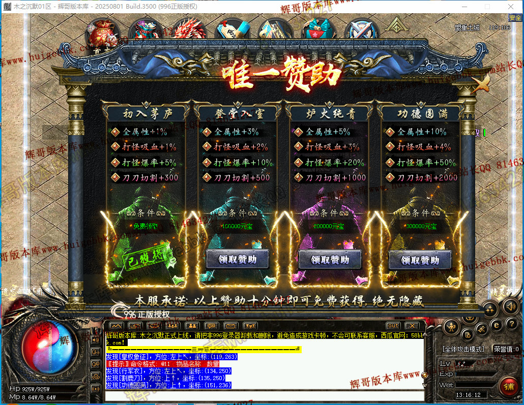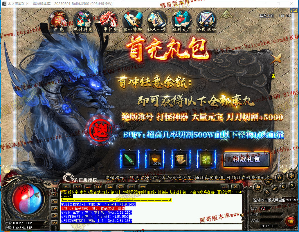 如果发现影响开区的大问题,可联系站长进行免费修复,细节问题自己处理不负责细节问题,