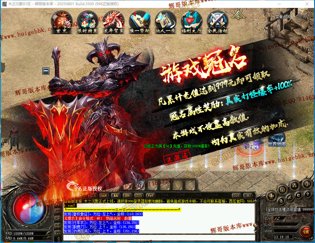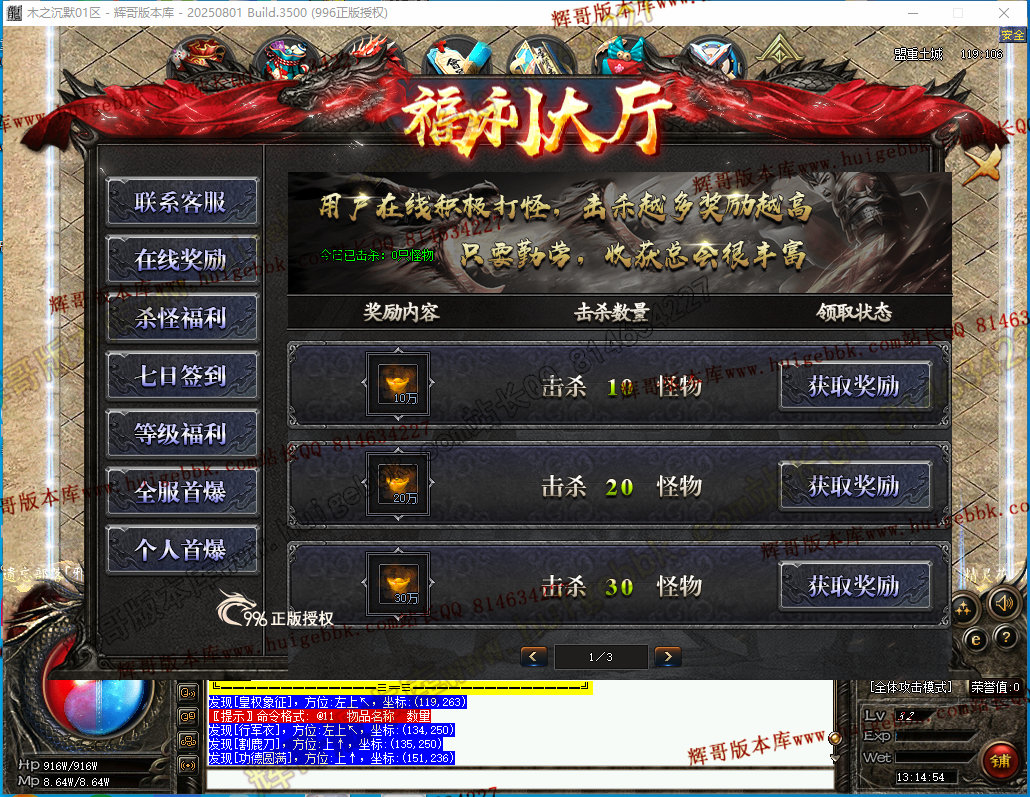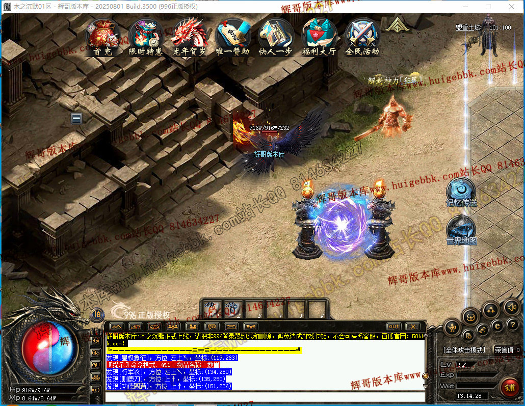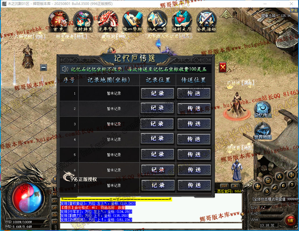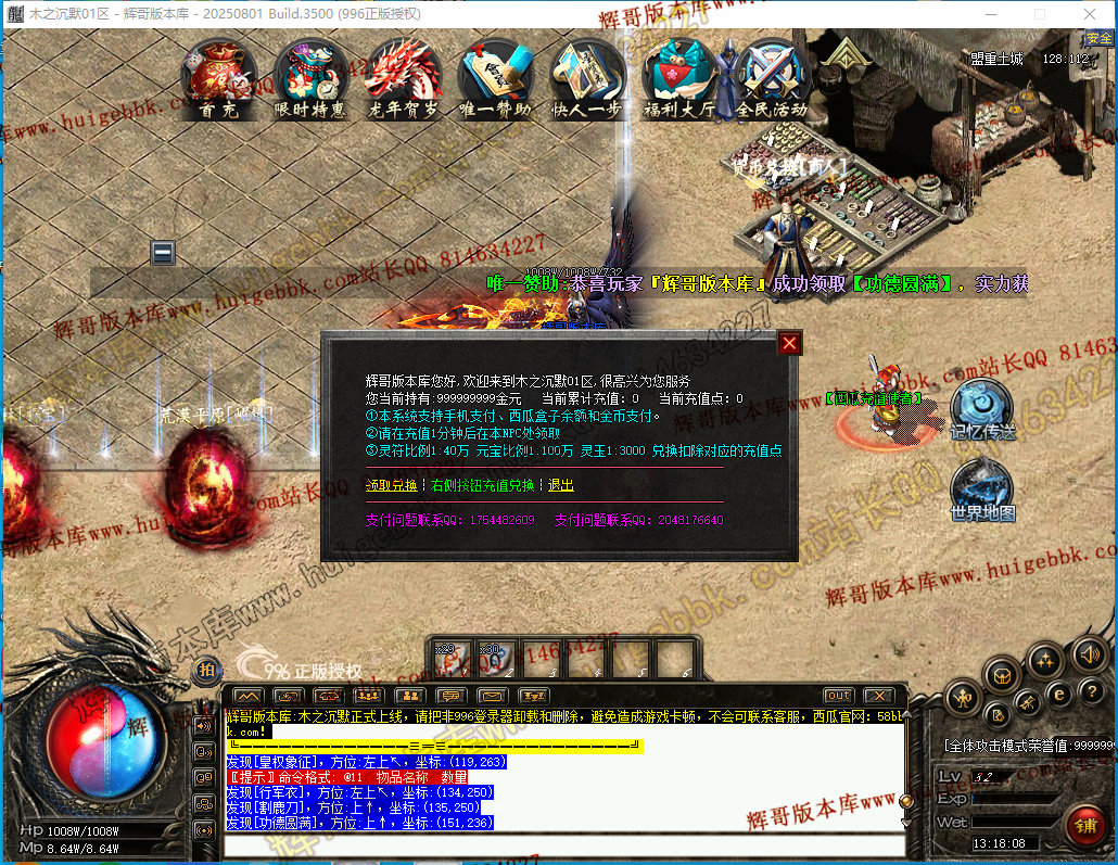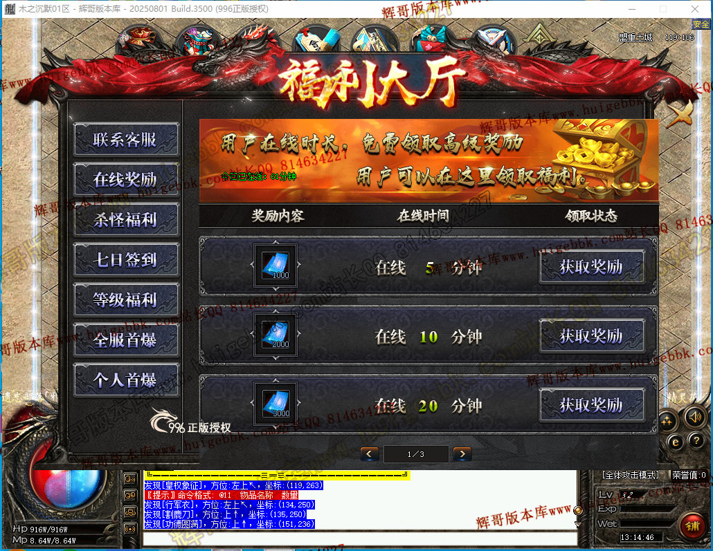 如果发现影响开区的大问题,可联系站长进行免费修复,细节问题自己处理不负责细节问题,