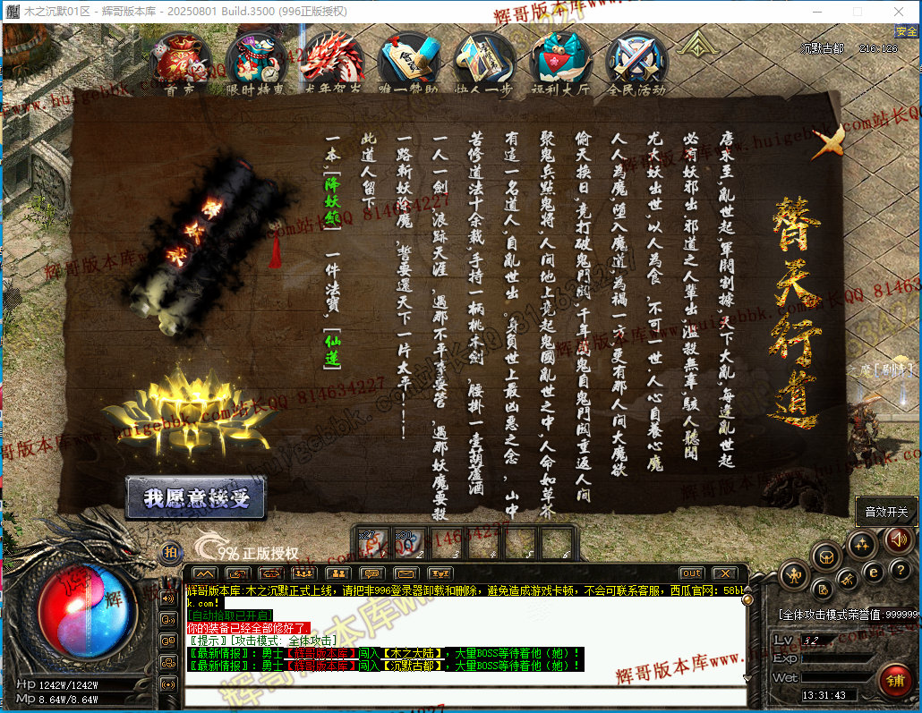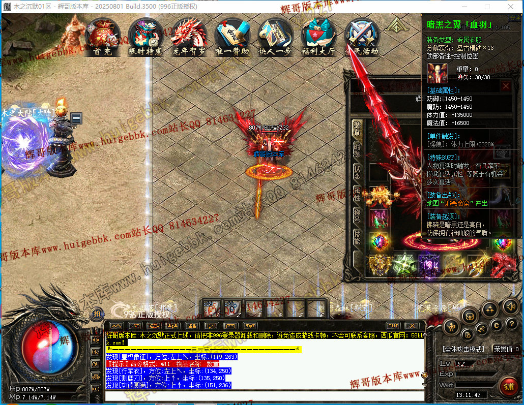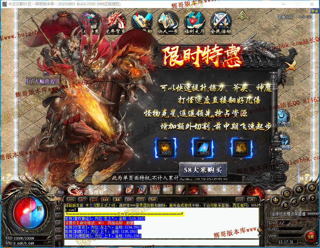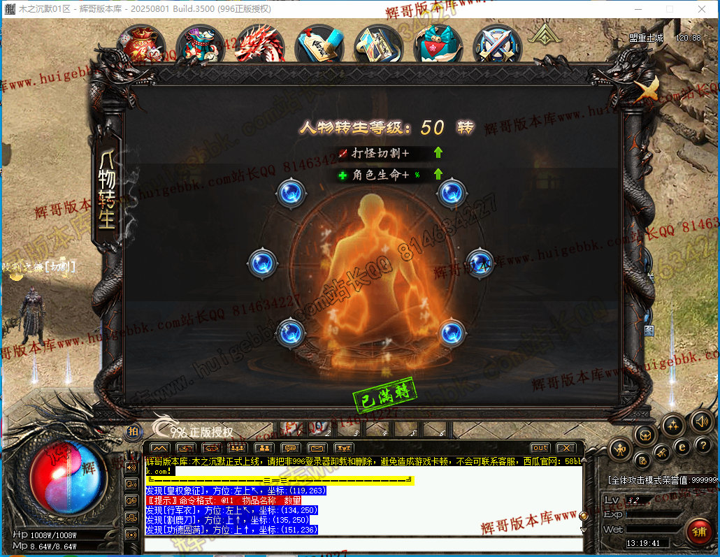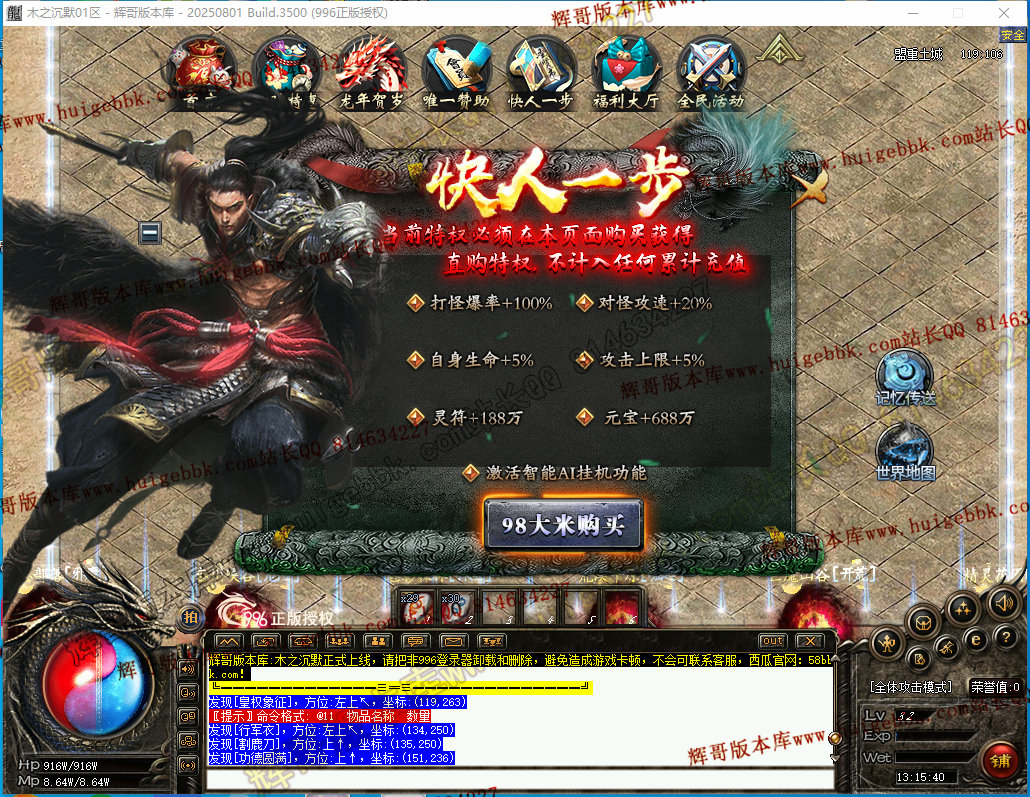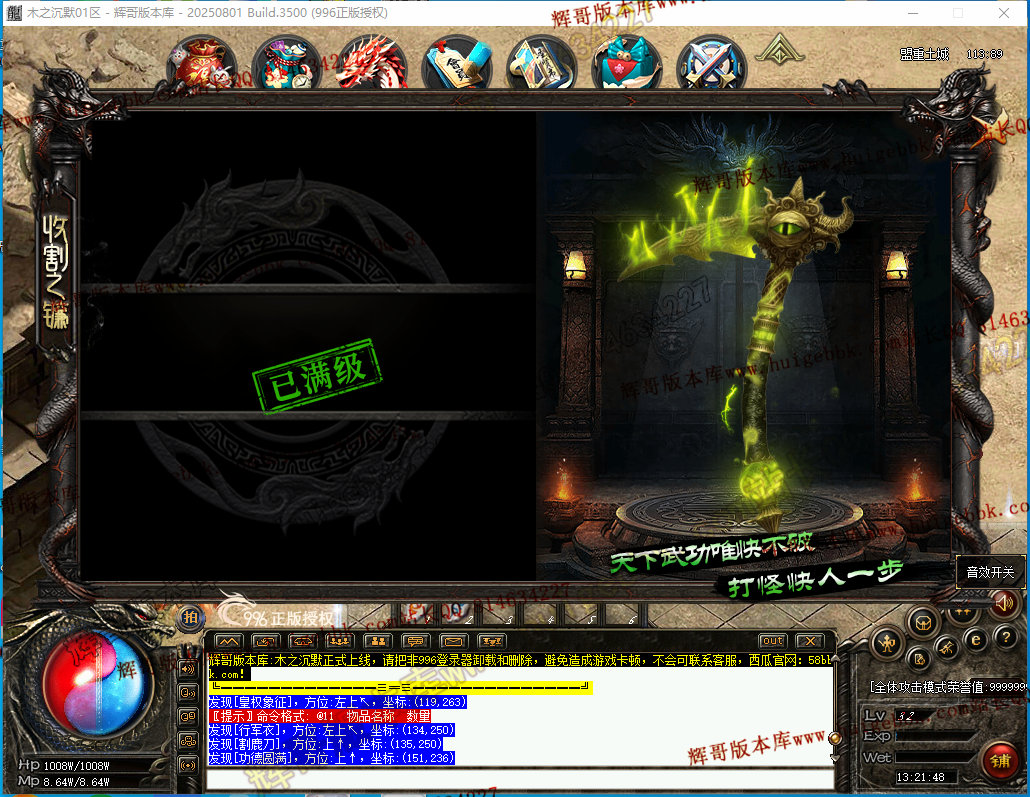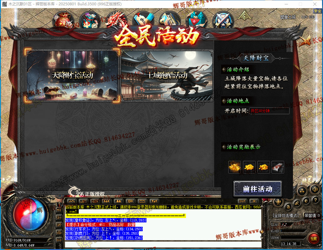 如果发现影响开区的大问题,可联系站长进行免费修复,细节问题自己处理不负责细节问题,