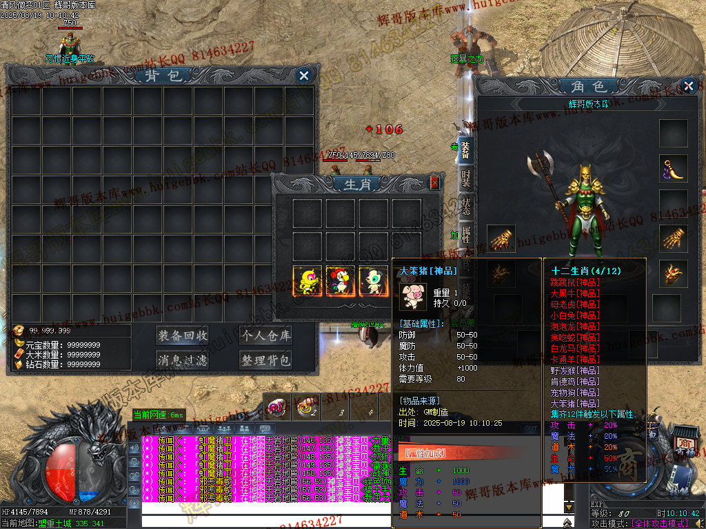 本服转生12转,转生材料所有怪物均有爆出,转生使者处可以把低级材料合成