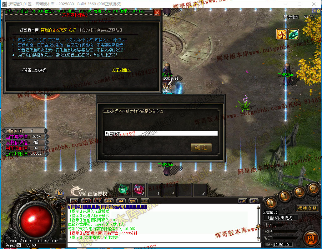 如果发现影响开区的大问题,可联系站长进行免费修复,细节问题自己处理不负责细节问题,