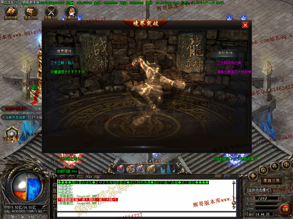 8,等级:<满等级1060,1000级之前打书升级,1000以后打怪爆破碎虚空丹升级,1010以后后面大陆查看