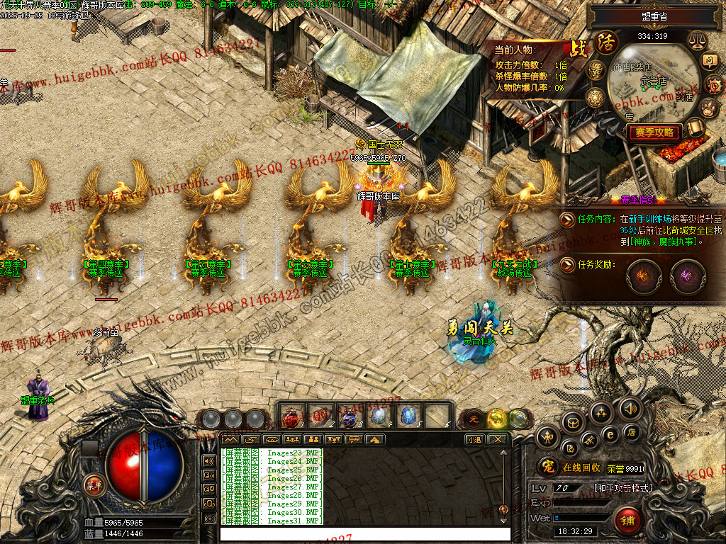杀猫逐鹿出新村 斩妖除魔入盟重 近观绿涛汇碧海 远眺青山有苍松