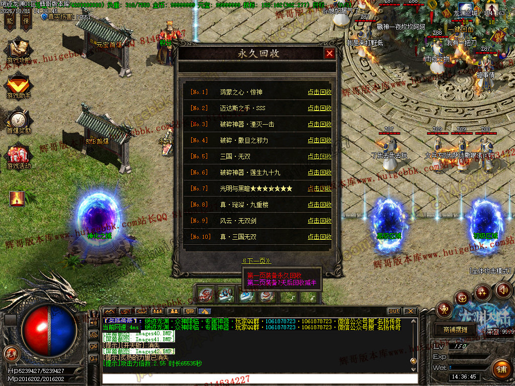 鸿蒙灵域(三界之内杀怪出通道,全服提示):第一季终极地图 刷新所有神化BOSS和无数人形怪物! 掉落终极武器,衣服,生肖类
