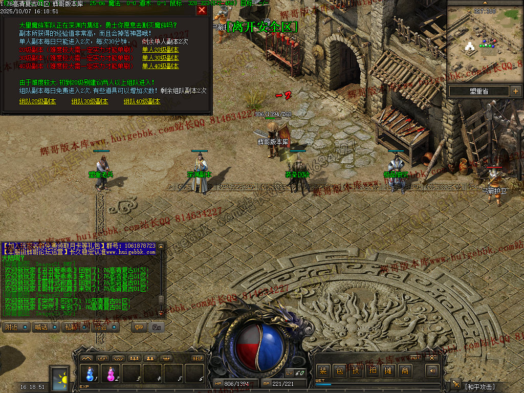 本服添加副本系统,不同等级可以进入不同的副本,每天限值2次,副本经验很高,还有比较好的装备掉落!