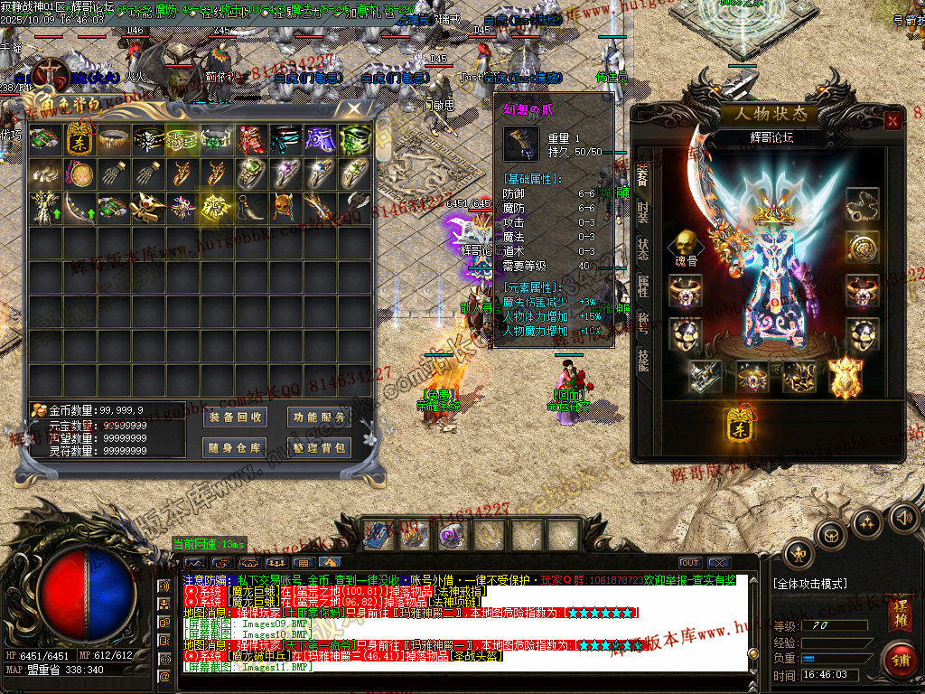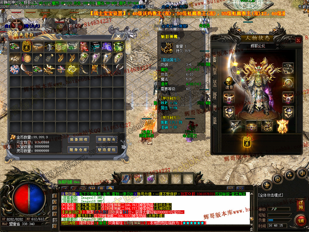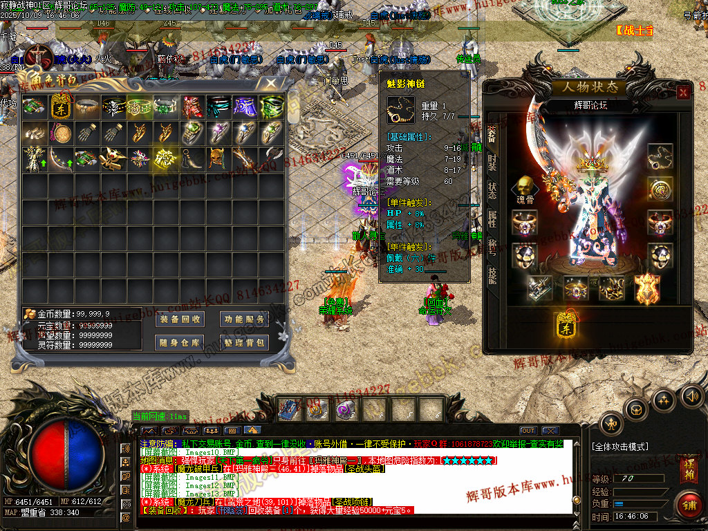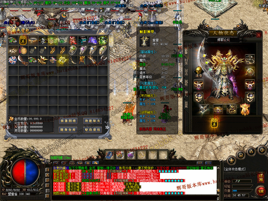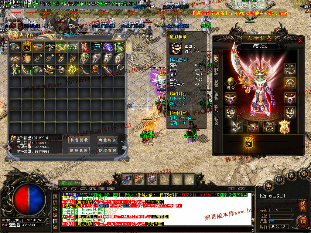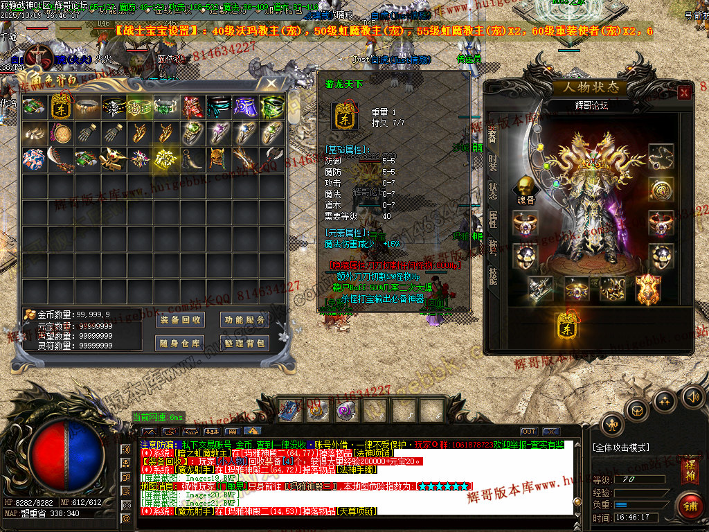 7、本服金币保底,元宝保底,装备保底,每—件装备都是钱.