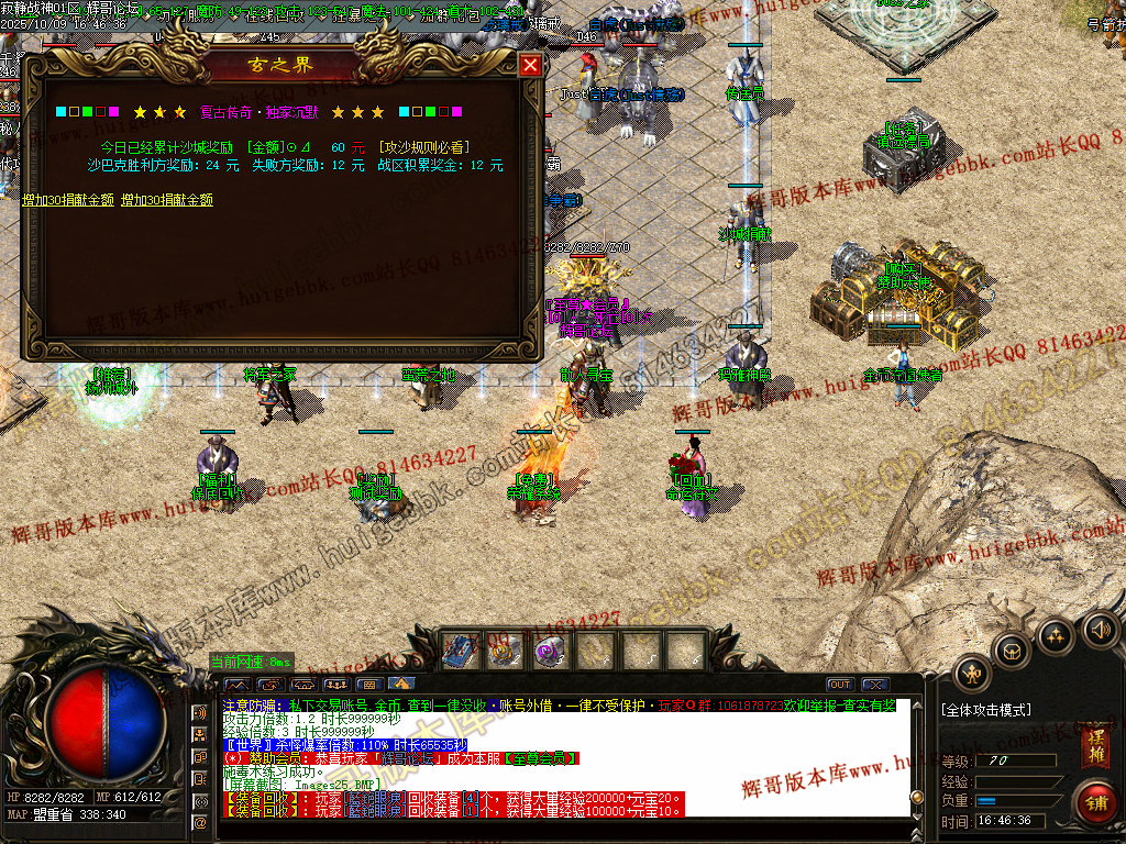 2、攻沙:新区第2天晚16点合区,第三天晚上集体抢沙,首沙奖励海量元宝·