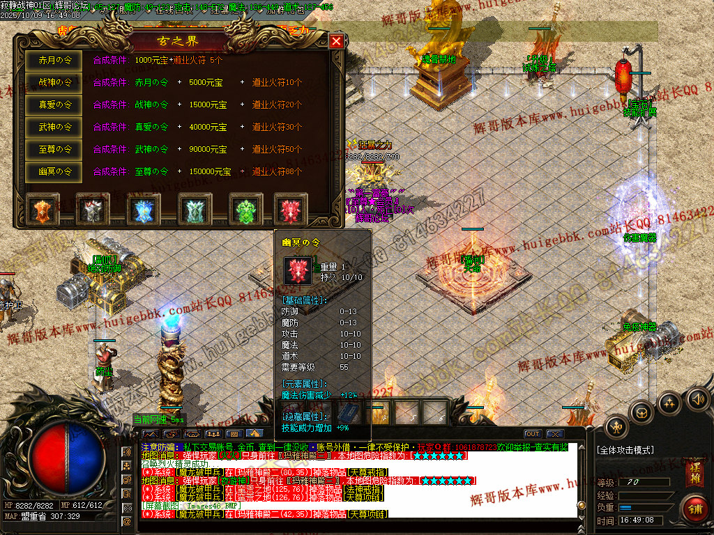2、装备:赤月-铜域-炎龙-绿玉—武神-游龙-魅影