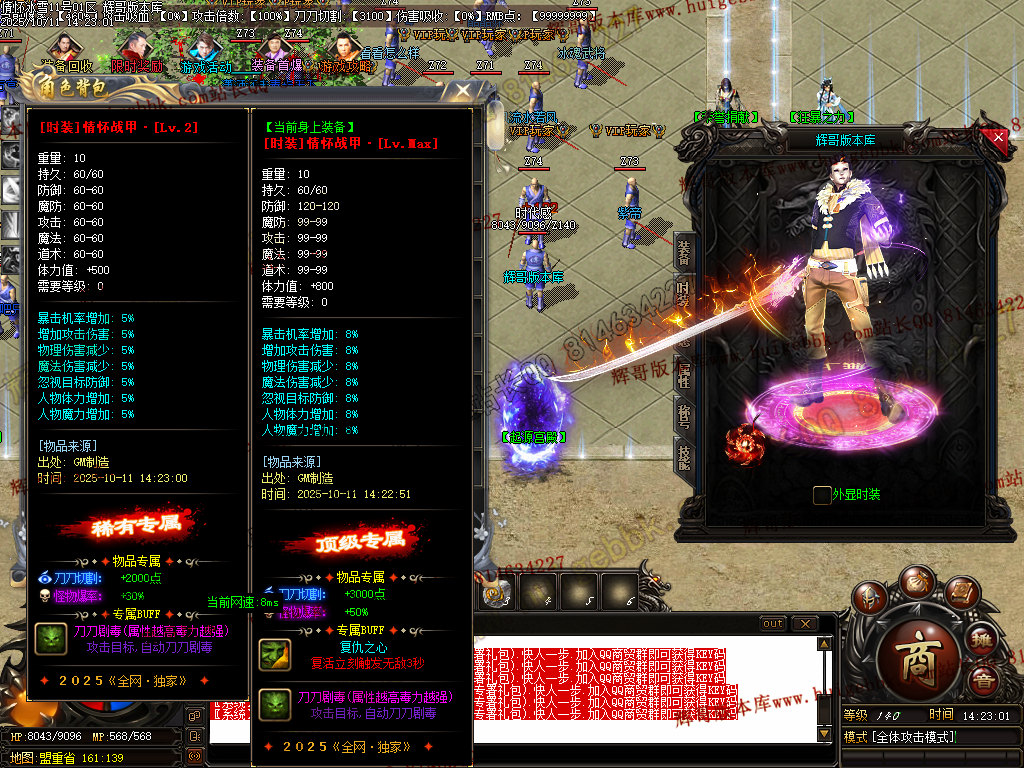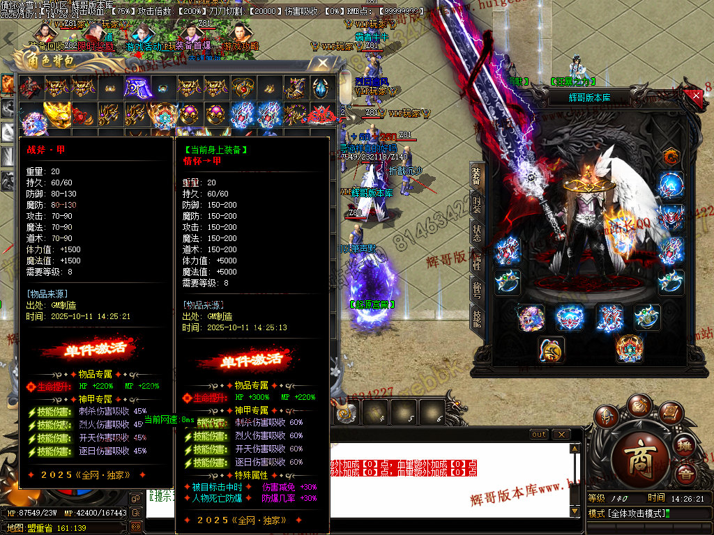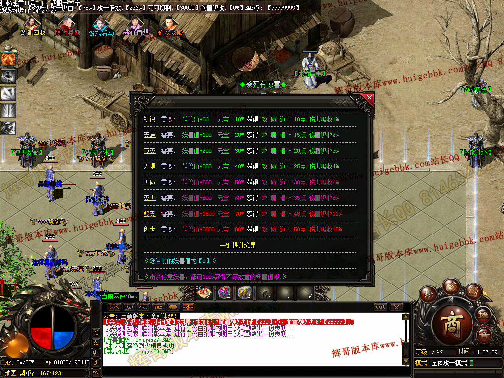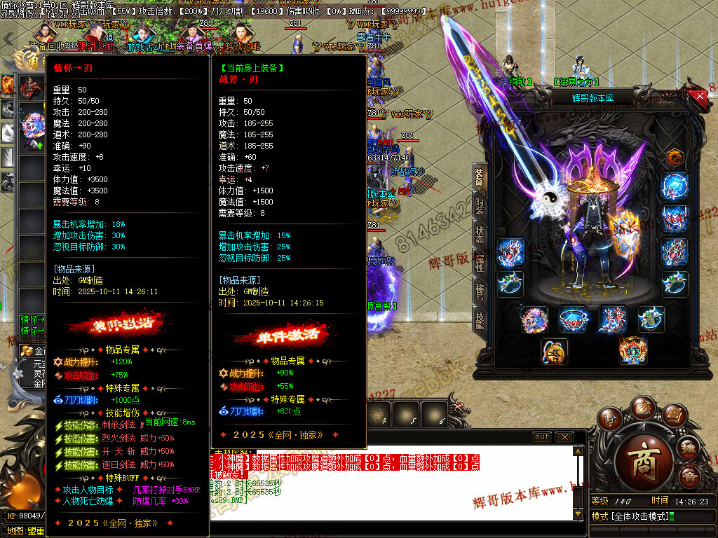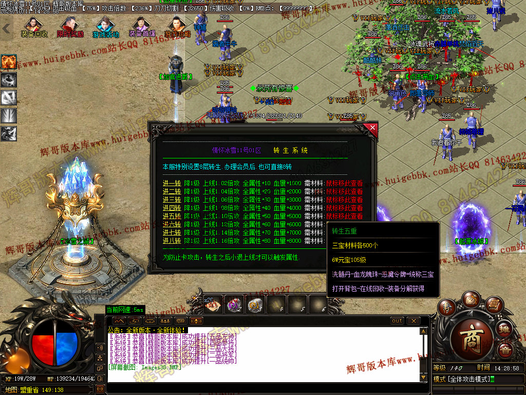 [装备血祭]:人物转生8转可激活人物倍功属性,杀人越货必备.