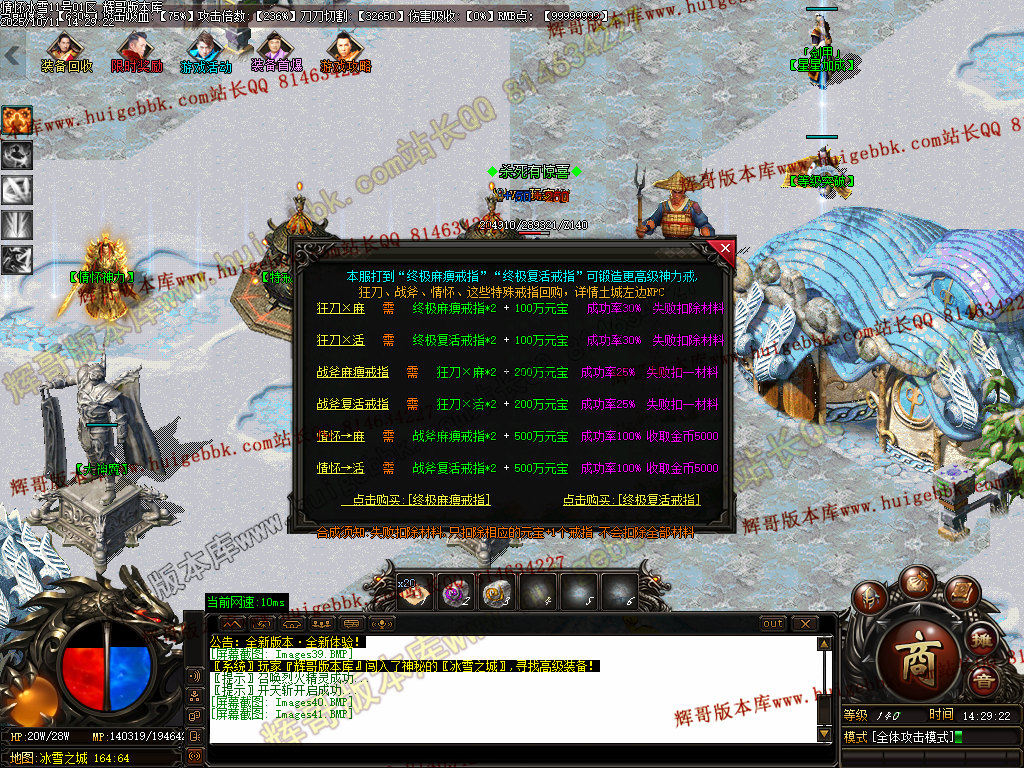【开区时间】:全新独家攻速君临冰雪版本来袭,独家创新 玩法新颖 诚邀兄弟来战!!!