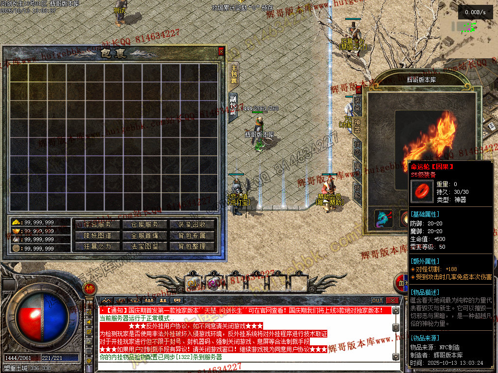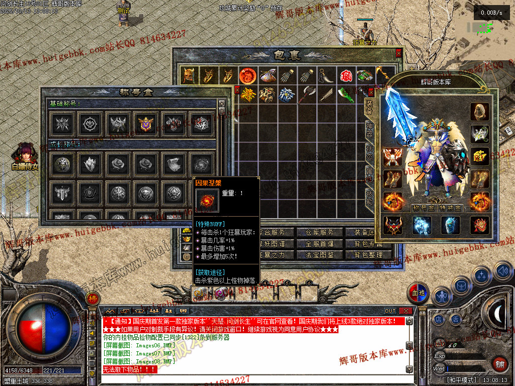 如果发现影响开区的大问题,可联系站长进行免费修复,细节问题自己处理不负责细节问题,