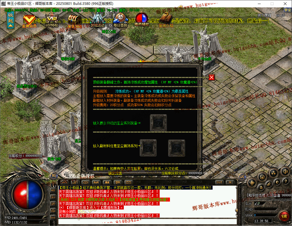 如果发现影响开区的大问题,可联系站长进行免费修复,细节问题自己处理不负责细节问题,