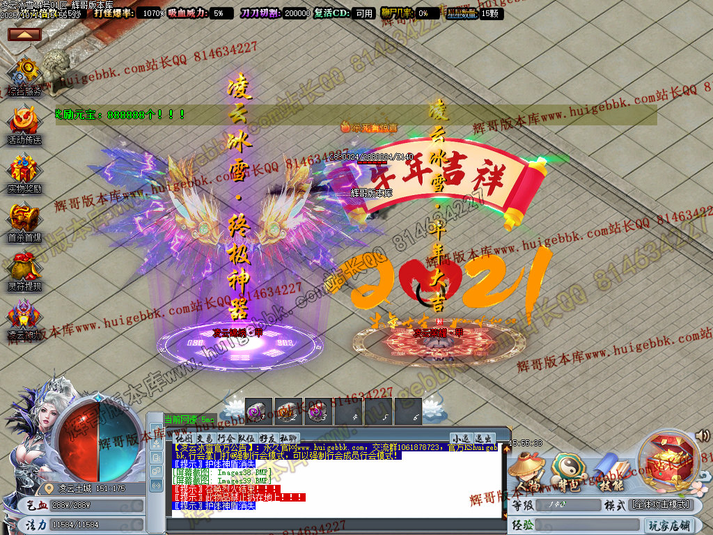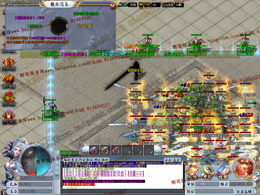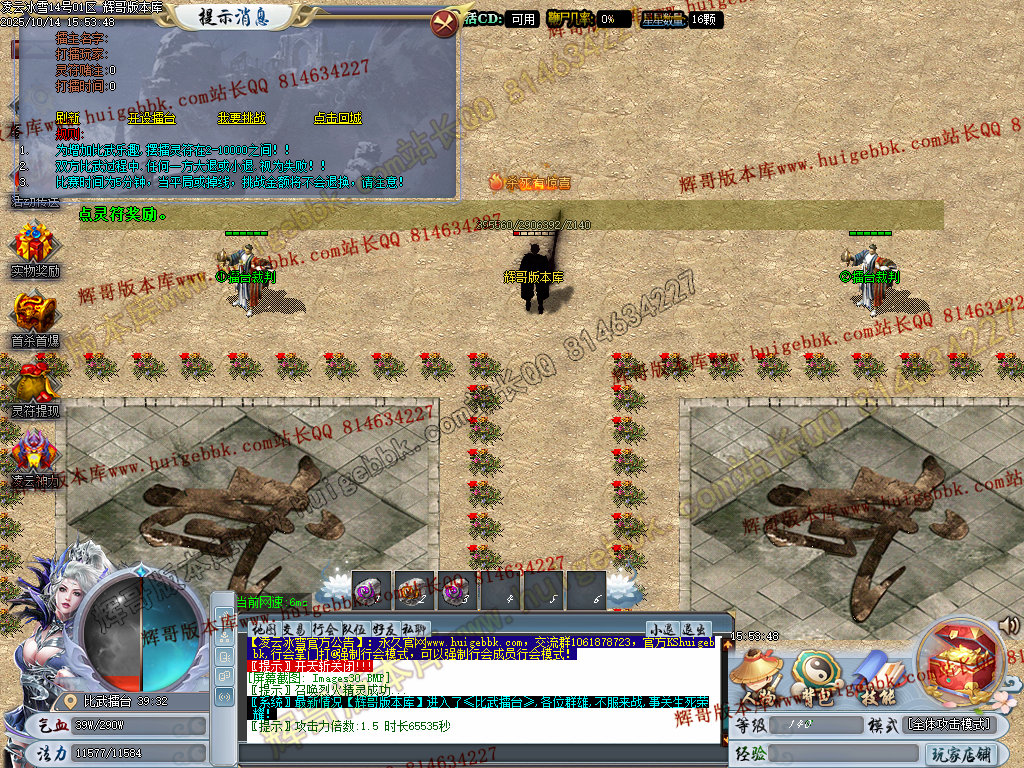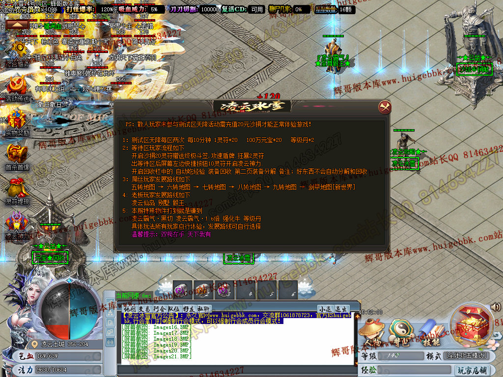 1:测试区天降每区两次 每10分钟 1灵符*20 100万元宝*20 等级丹*2