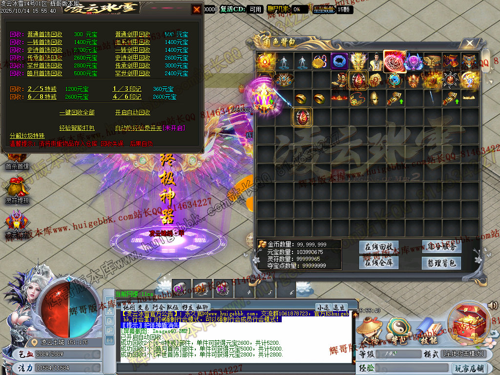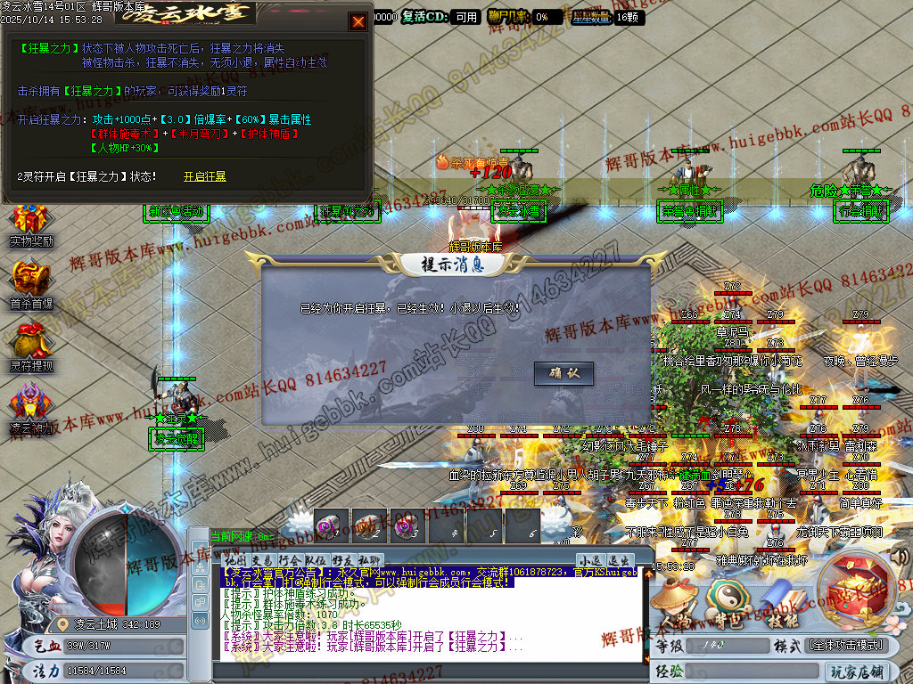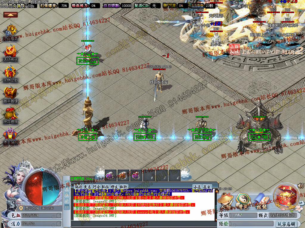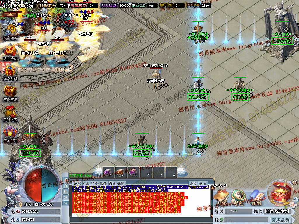 1:测试区天降每区两次 每10分钟 1灵符*20 100万元宝*20 等级丹*2