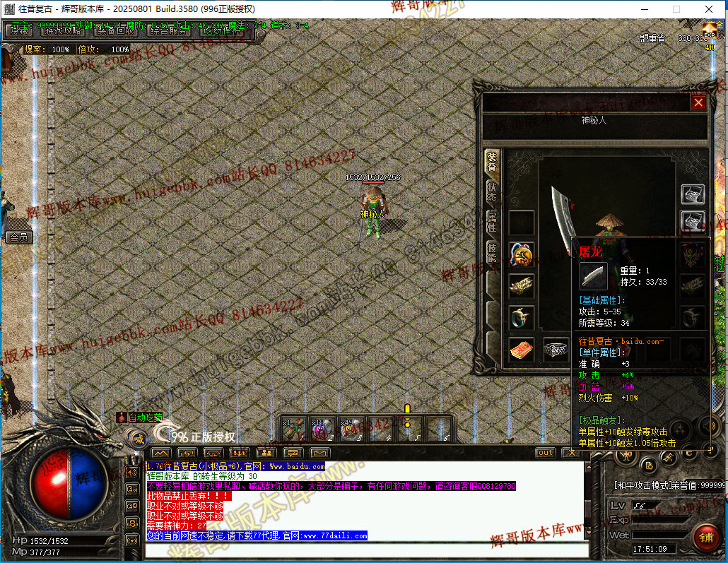 如果发现影响开区的大问题,可联系站长进行免费修复,细节问题自己处理不负责细节问题,