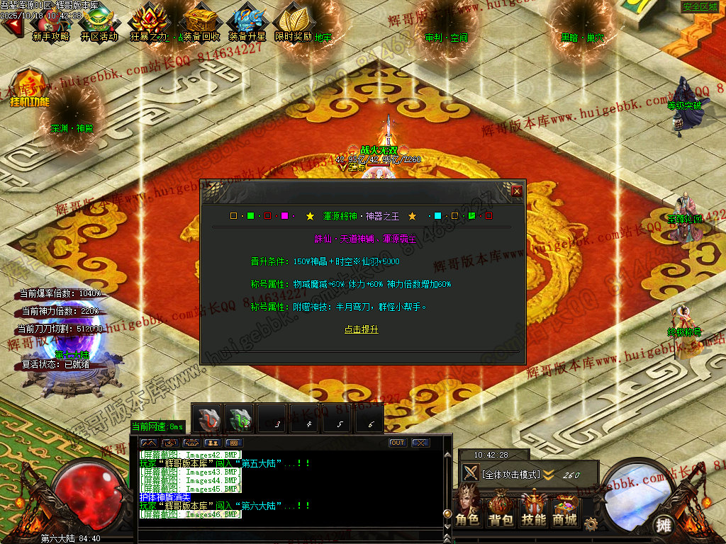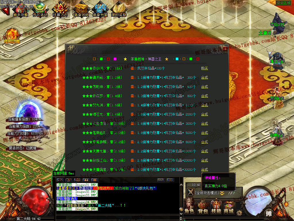 【310元档】(充值280元神晶即可)回馈+狂暴 + 三大路满盾牌+三大陆生肖切割神器+三大陆升级 + 充值300大米(30元)领取沙城捐献