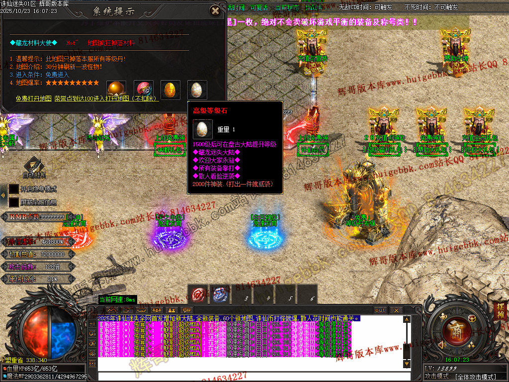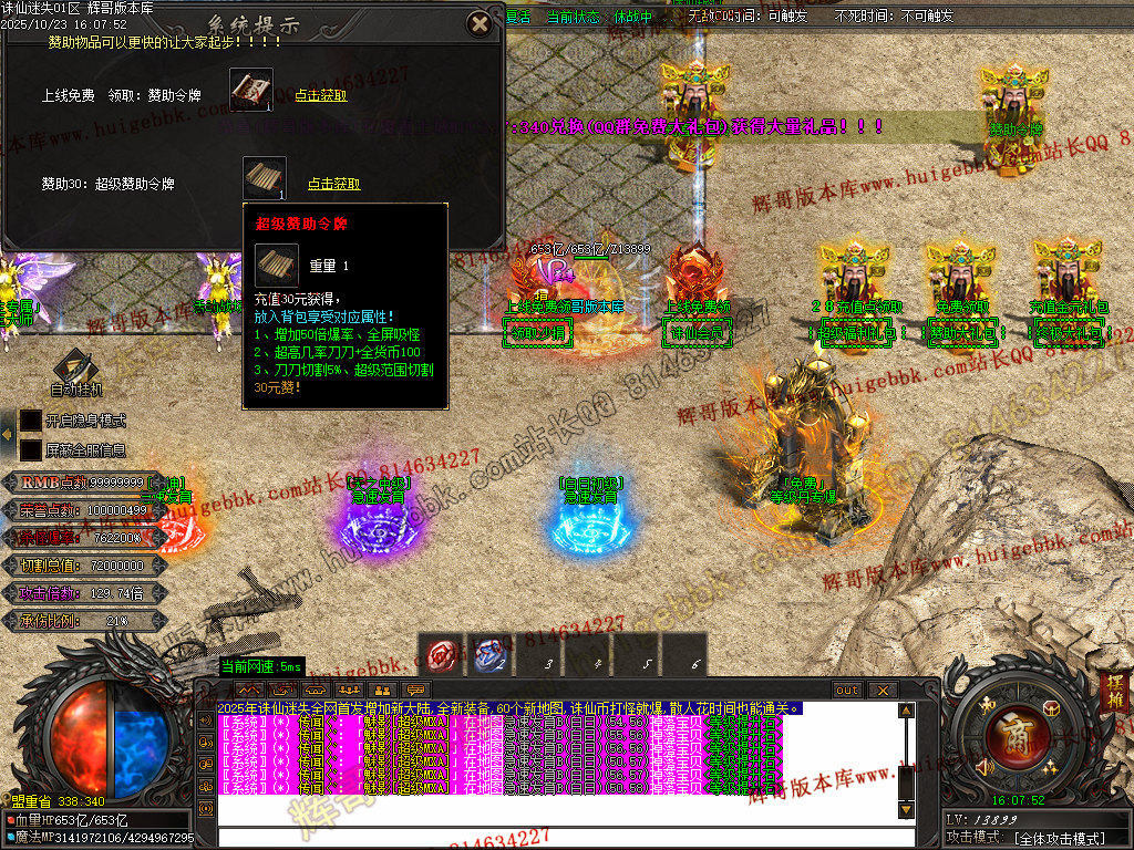 2.增加地图npc:诛仙联盟 苏超联赛 徐州之巅 神级转生 装备兑换 等级提升 赞助令牌等等npc,增加可玩性