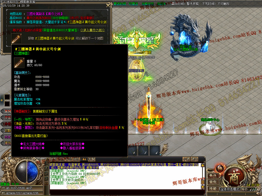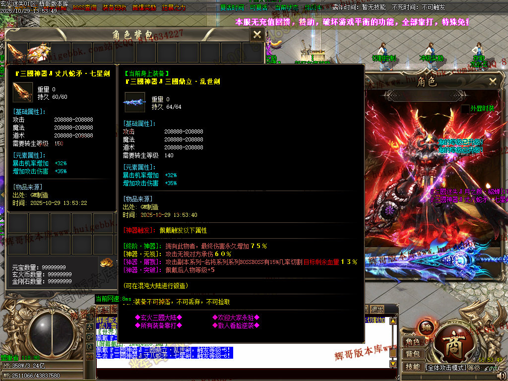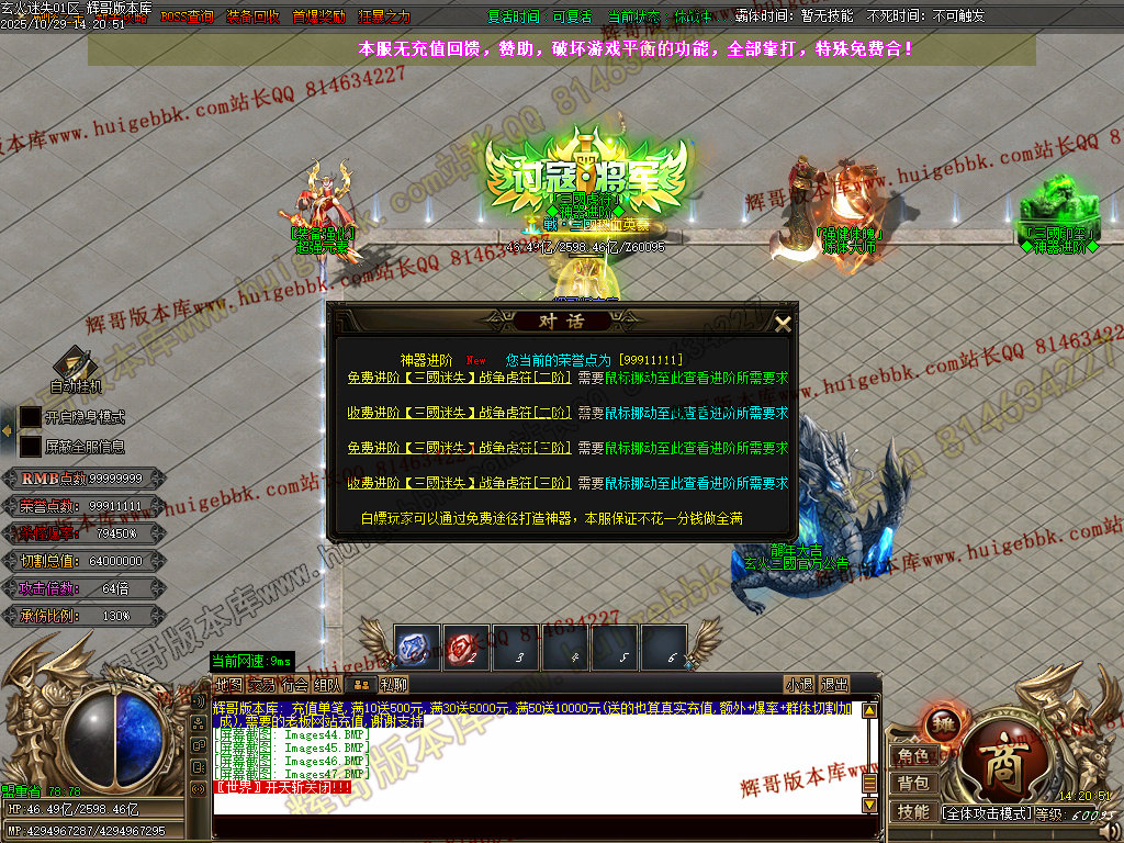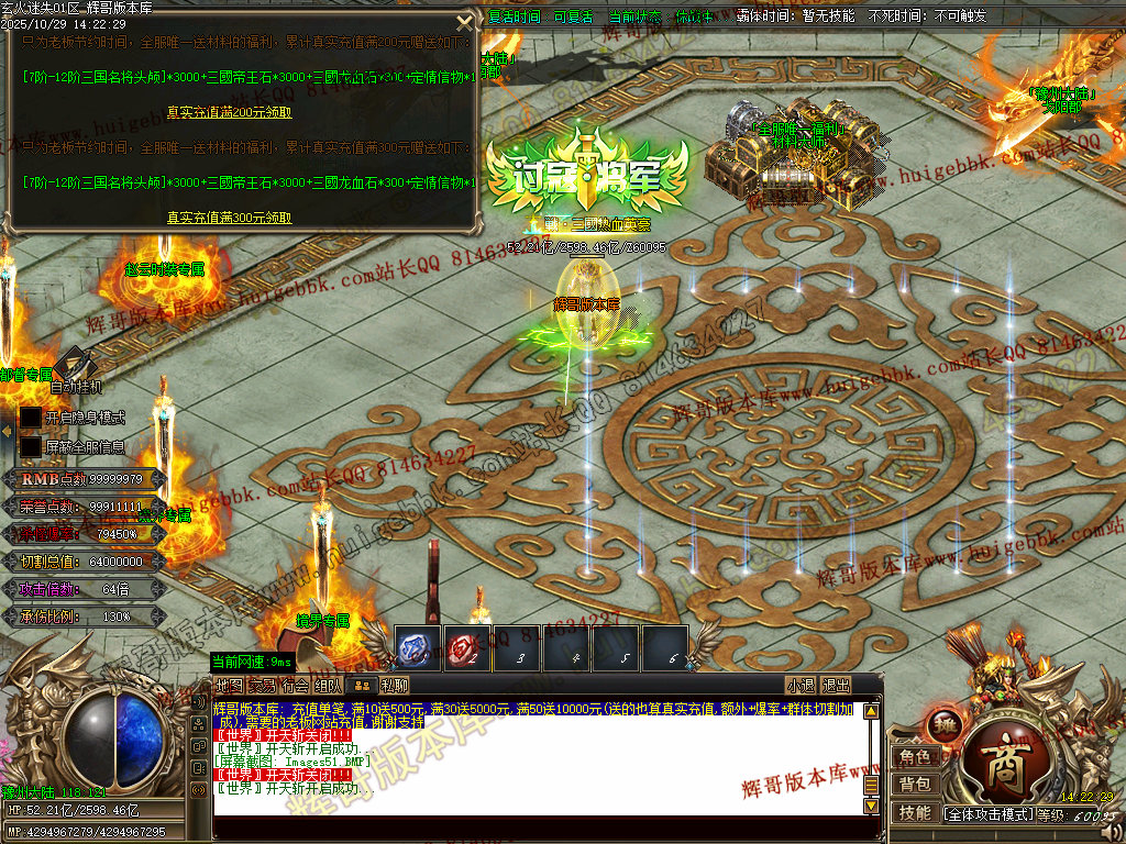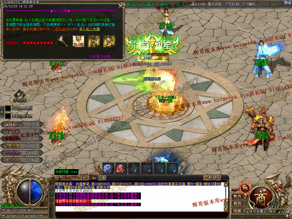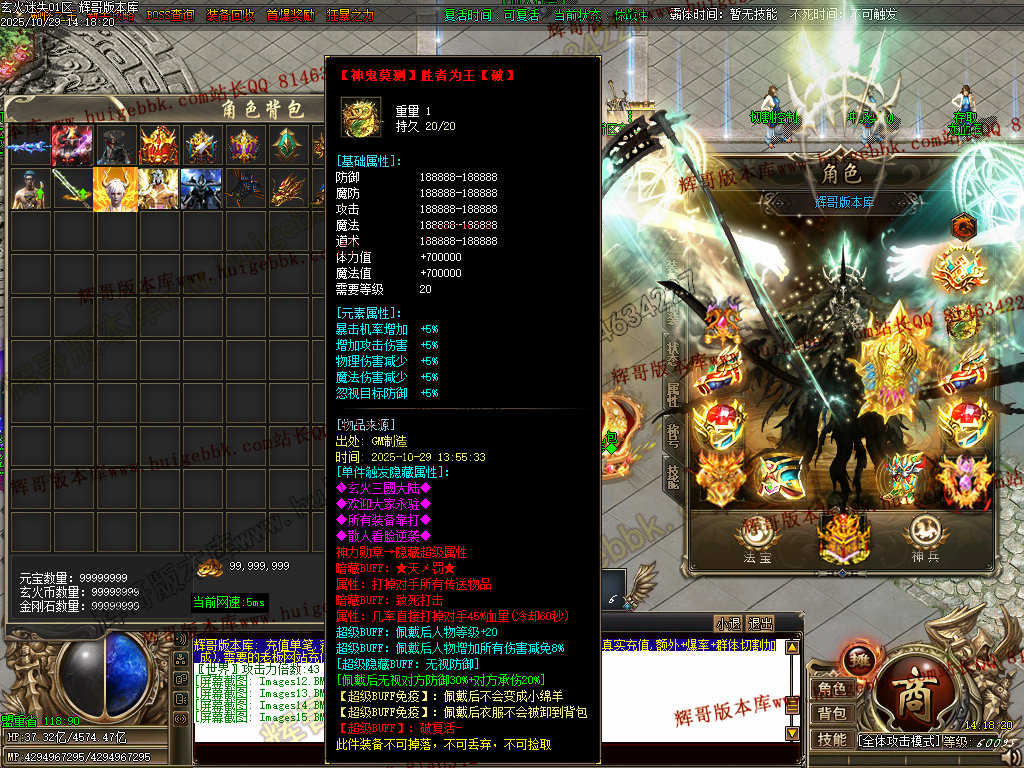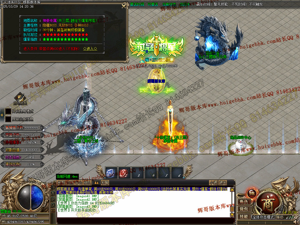 背包神器地图击败里面怪物,出背包神器,刀刀红名+几率斩杀500亿血量+倍攻20+装备掉率50万,