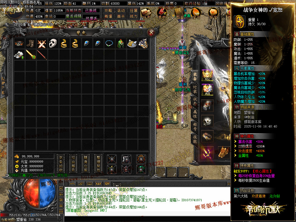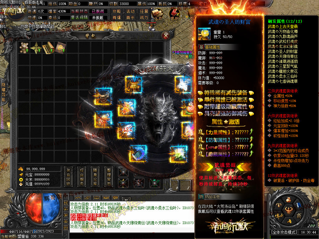 满级全元素 7%,攻击速度提升 150%,暴击伤害 12%,对怪爆率 100%,全性 20%