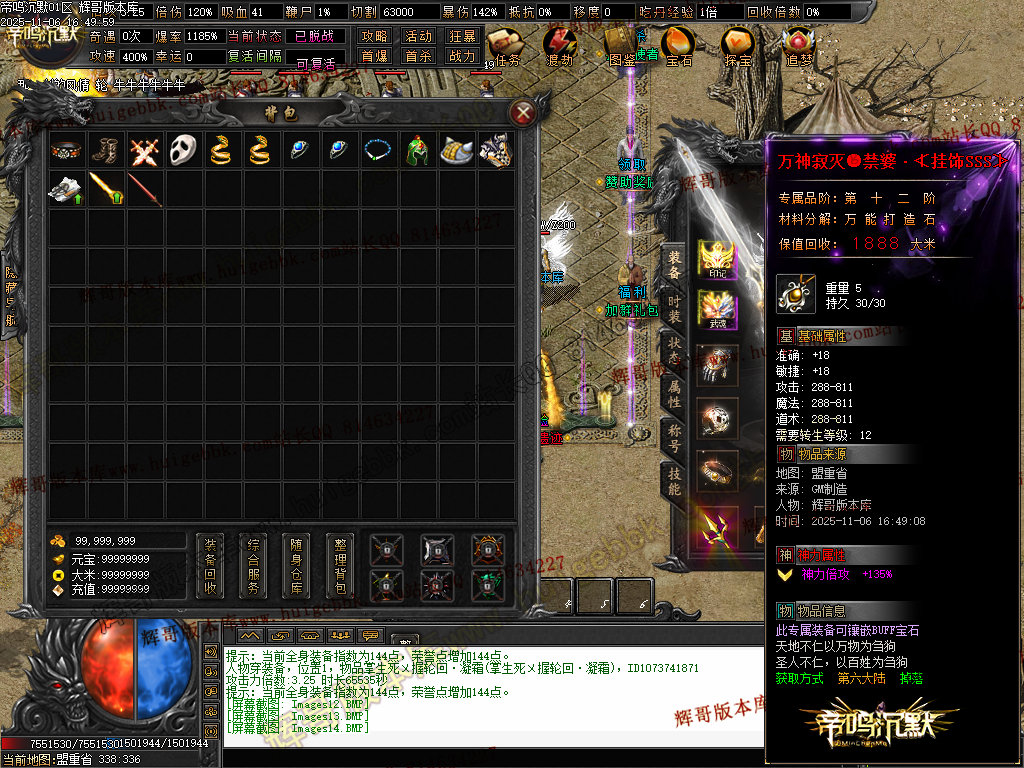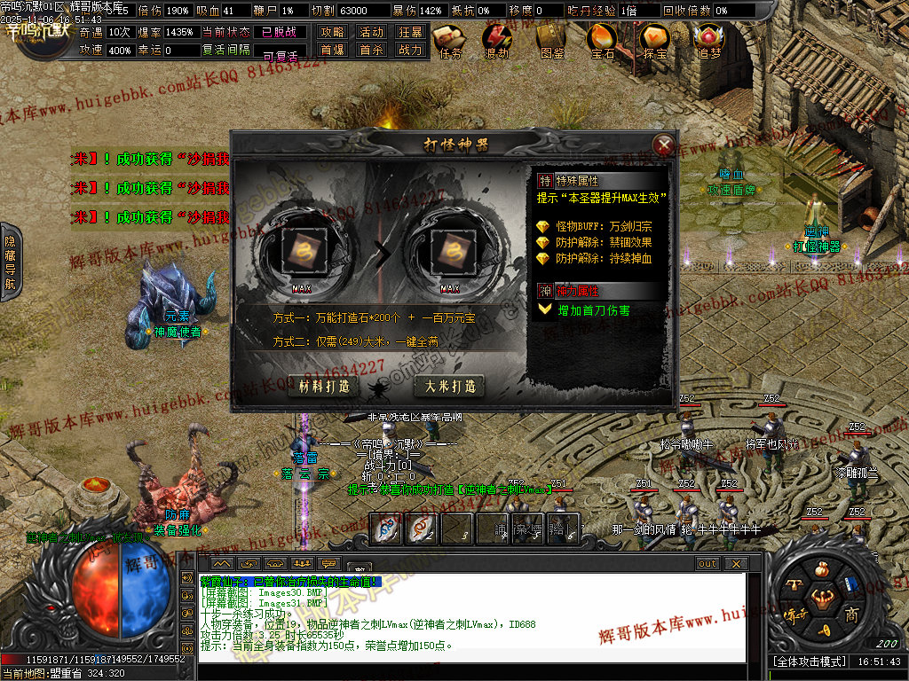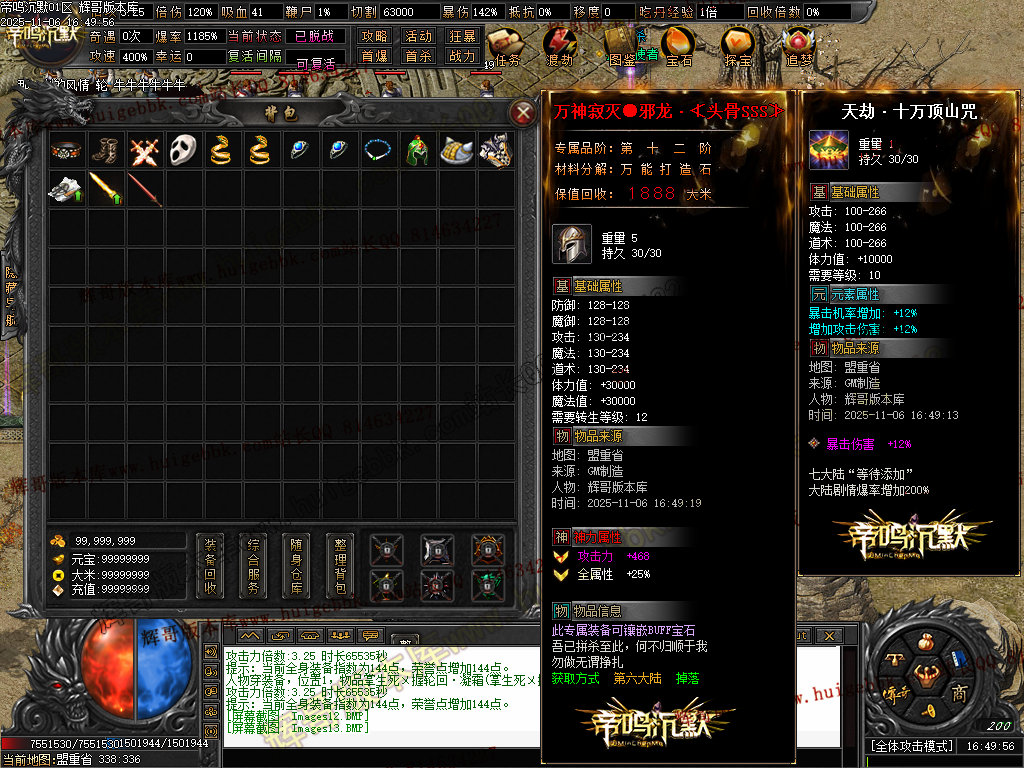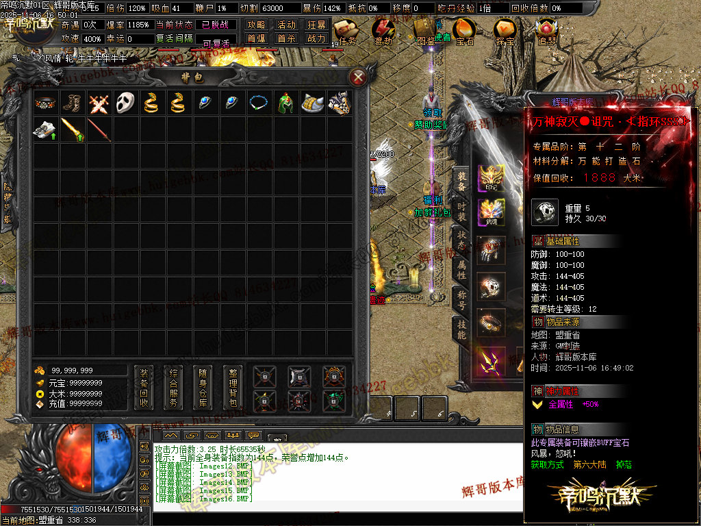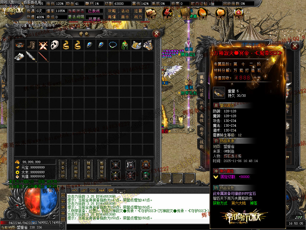 帝王签:攻击速度 30%,打怪爆率 100%,固定切割10万