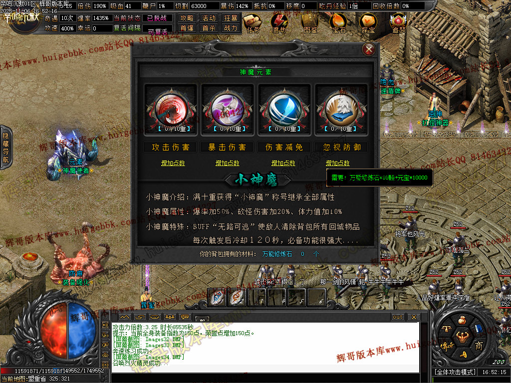 小神魔属性:爆率加 50%、砍怪伤害加20%、体力值加 10%小神魔特殊:BUFF“无路可逃”使敌人清除背包,所有回城物品每次触发后冷却 120 秒必备功能很强大
