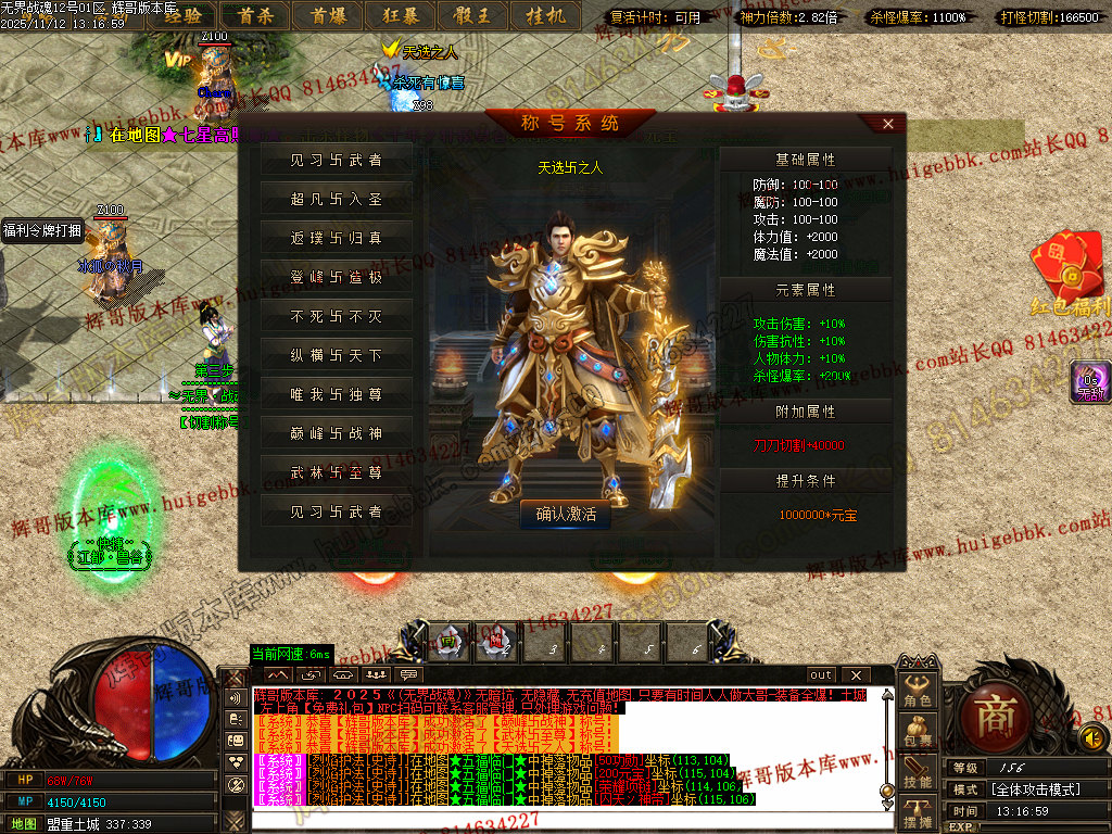 赞助礼包18元:领取冠名大哥,几率冰冻怪物,几率斩杀怪物100W血量,100%暴率,1.1倍攻击。