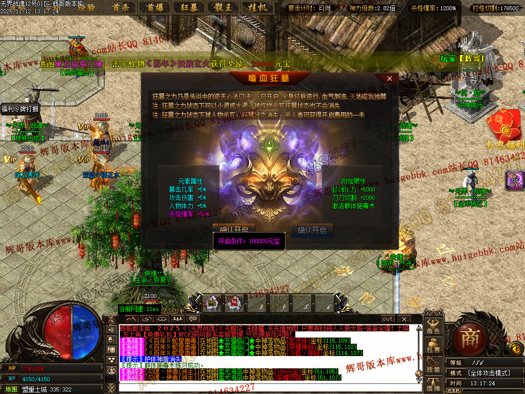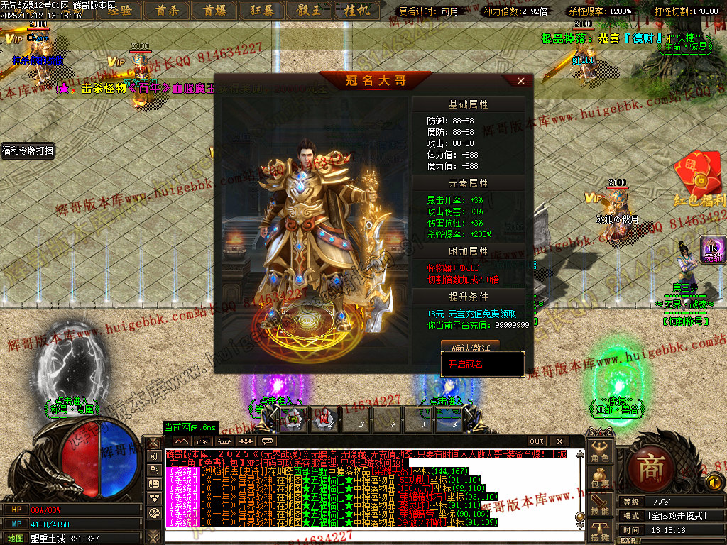 赞助礼包88元:领取全屏吸怪技能。刀刀冰冻怪物。几率斩杀怪物200W血量,300%暴率,1.3倍攻击。