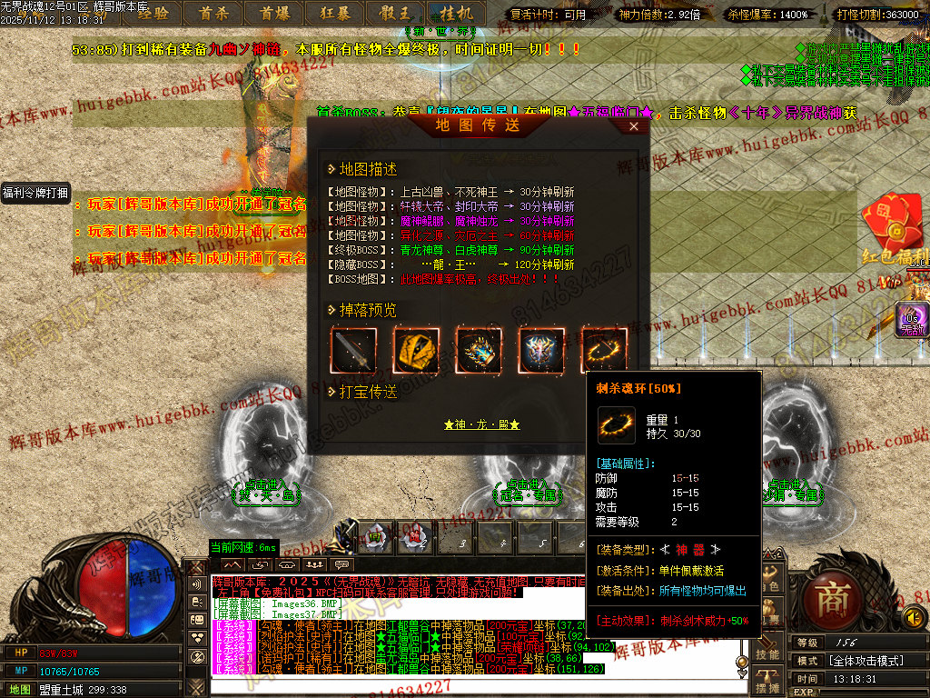 ★上古遗迹★ 合区后开启,爆出法器最佳地图,所有怪都出,爆率极高。建议手动引怪刷怪。