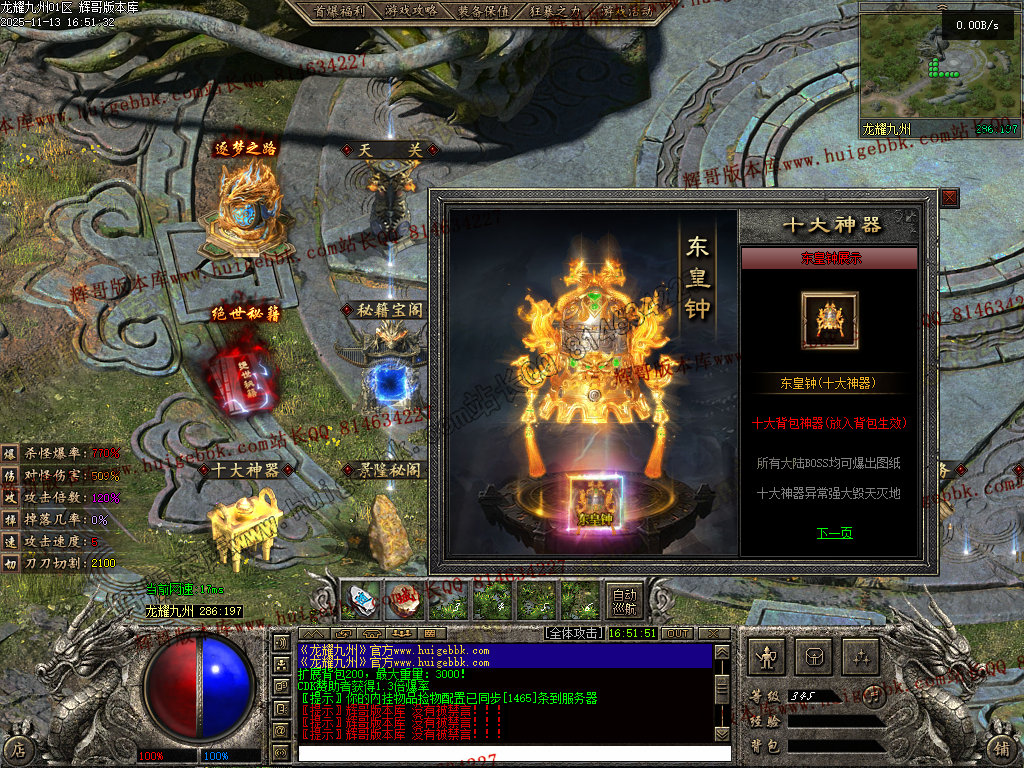 27-397独家龙耀九州三职业传奇服务端-十大神器-六大陆-自动回收-翎风引擎