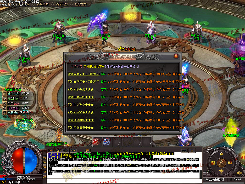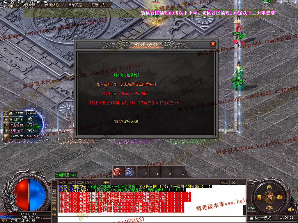如果发现影响开区的大问题,可联系站长进行免费修复,细节问题自己处理不负责细节问题,