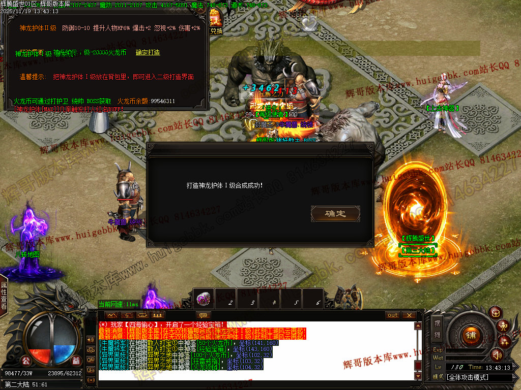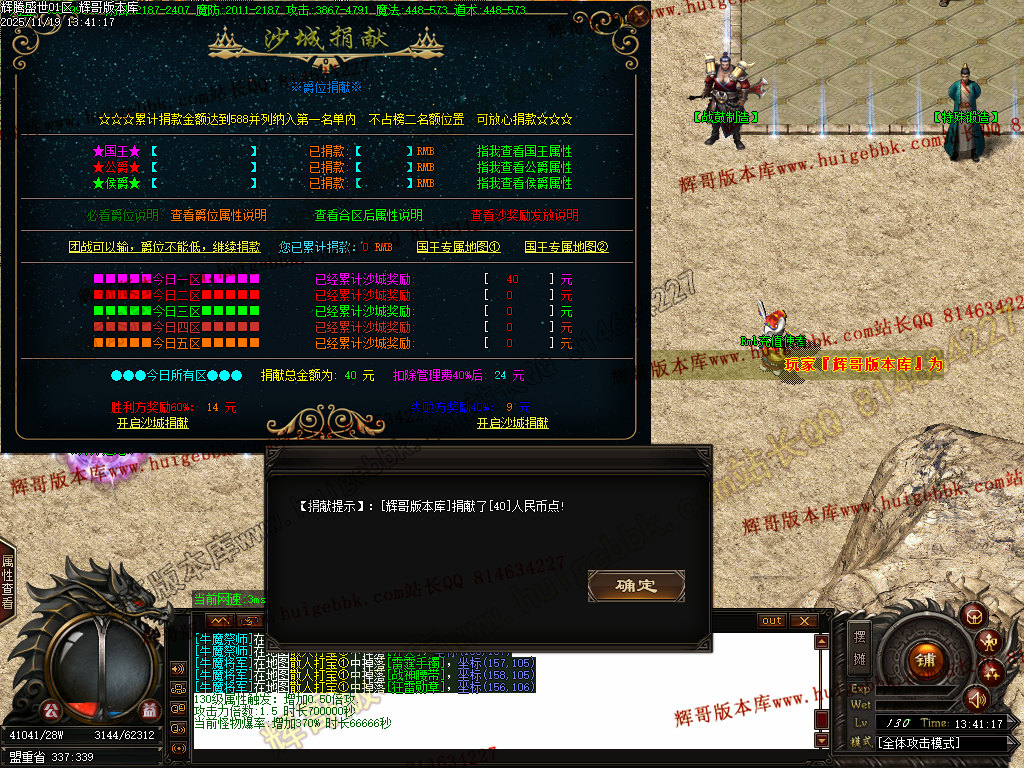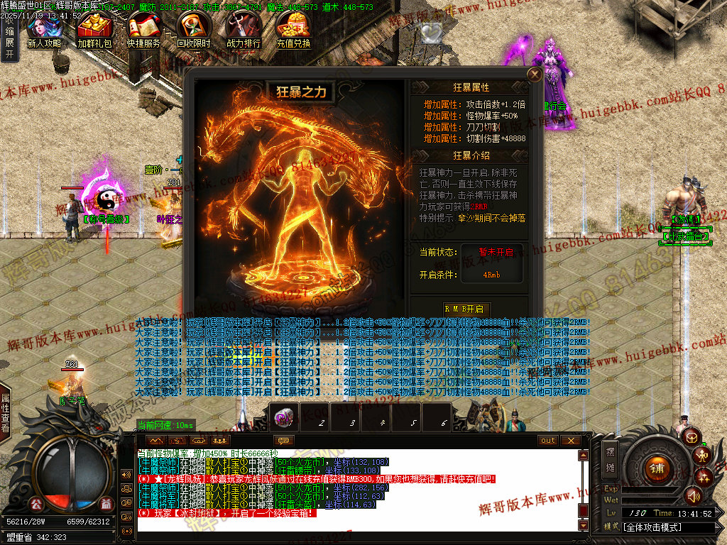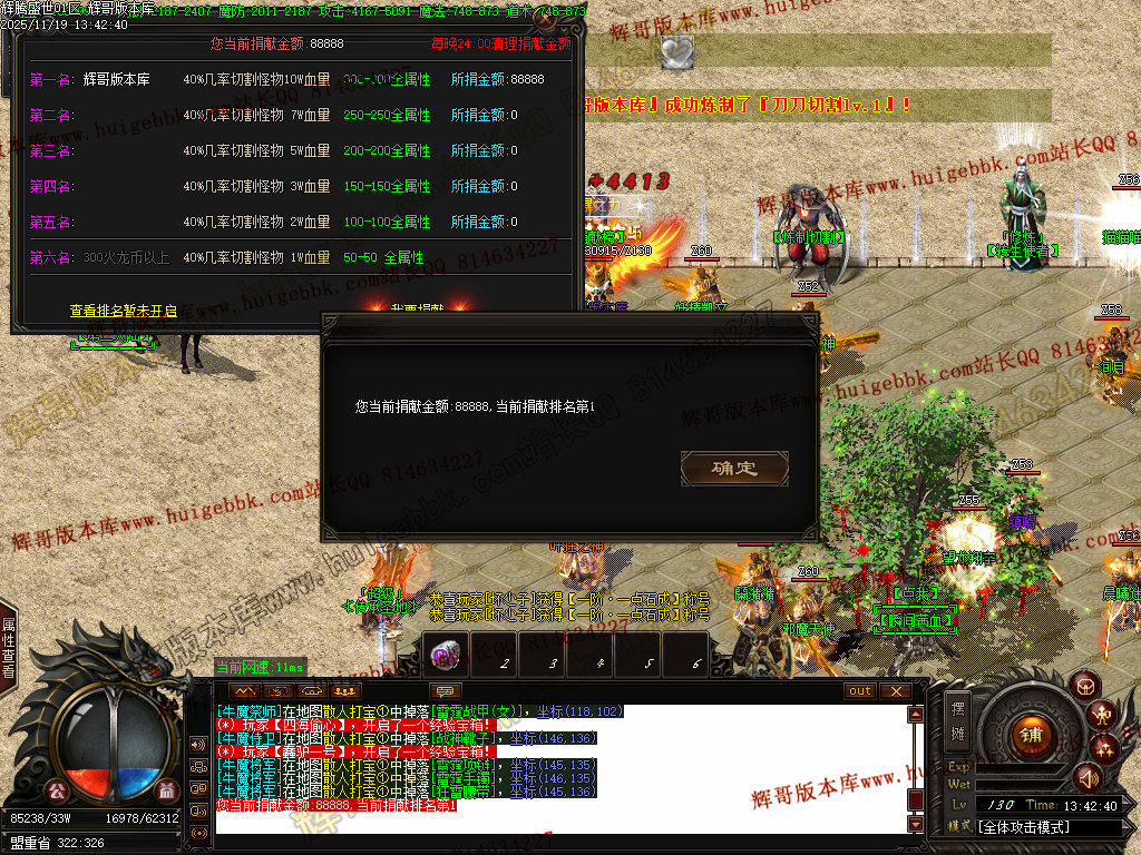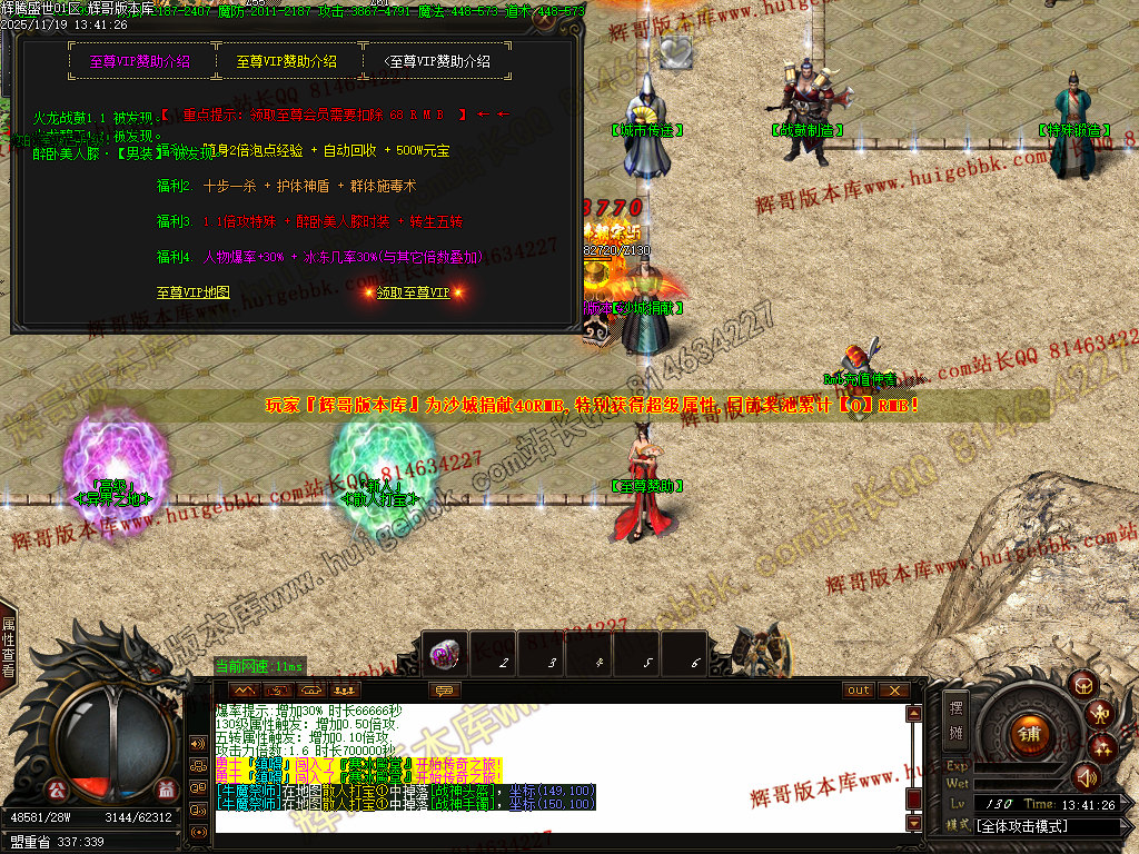 3、资深玩家:至尊会员+满回馈(赠送十步一杀和魔法盾)+沙捐+狂暴=888元火龙币+40元RMB=928