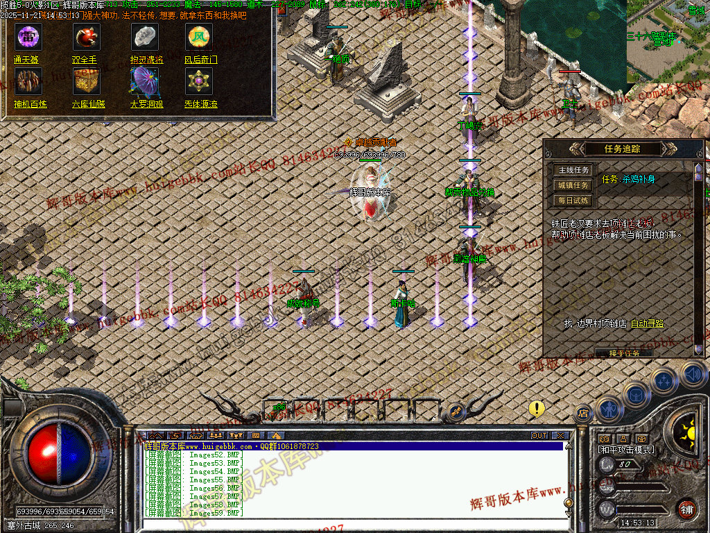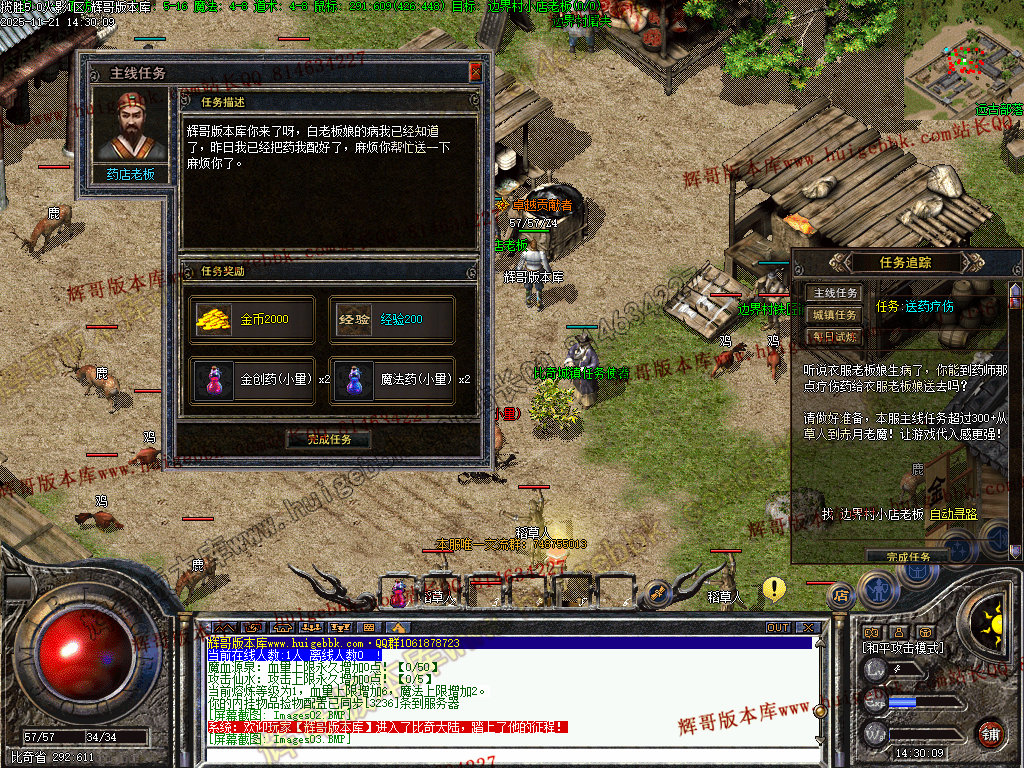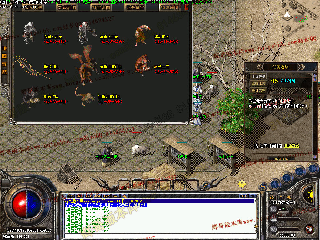杀猫逐鹿出新村 斩妖除魔入盟重 近观绿涛汇碧海 远眺青山有苍松