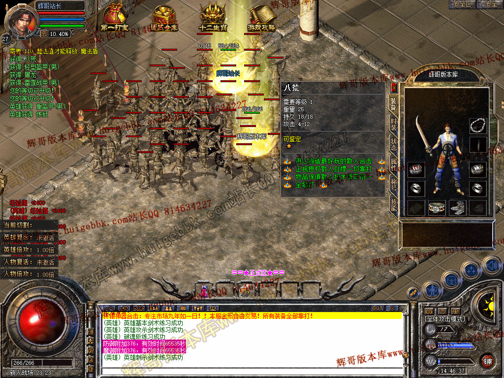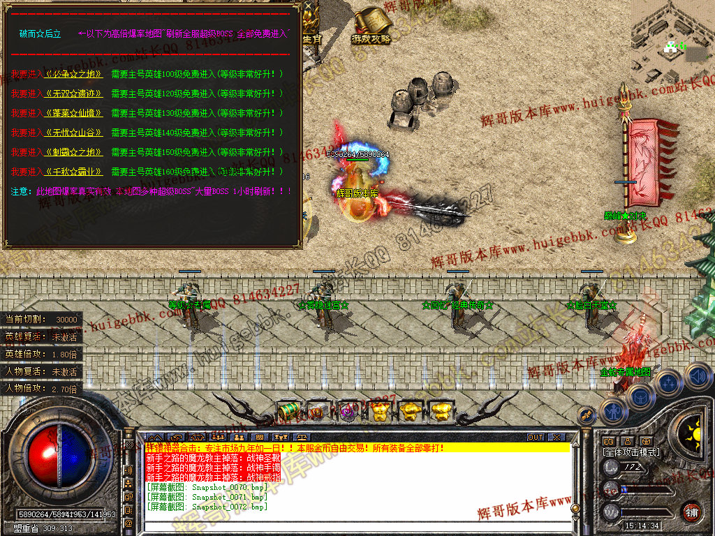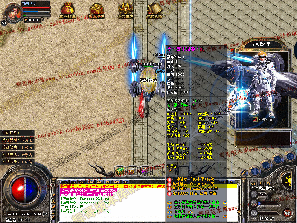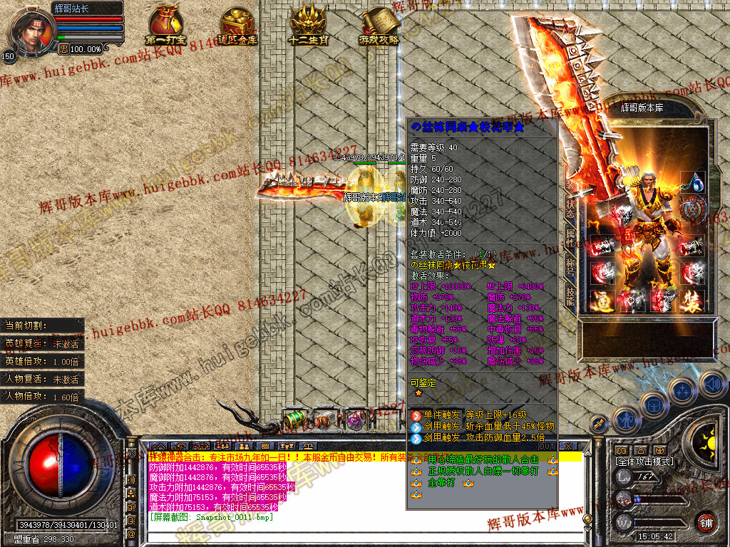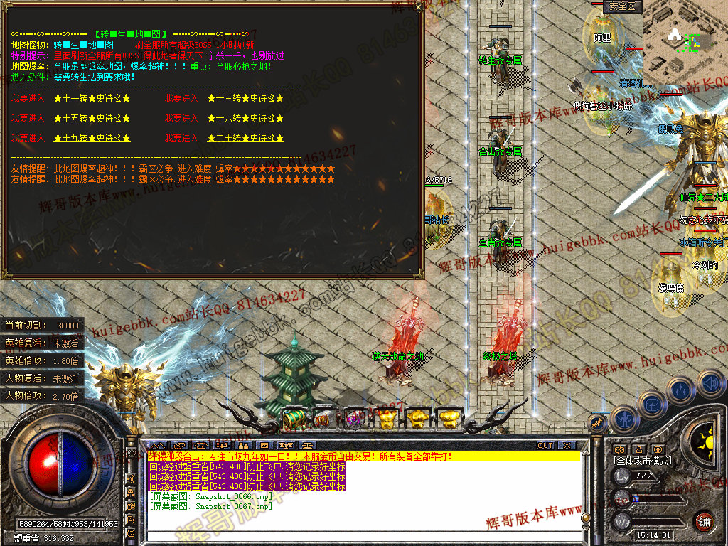 此版本比底板多更新了6套装备.几十个地图还增多了4套四格