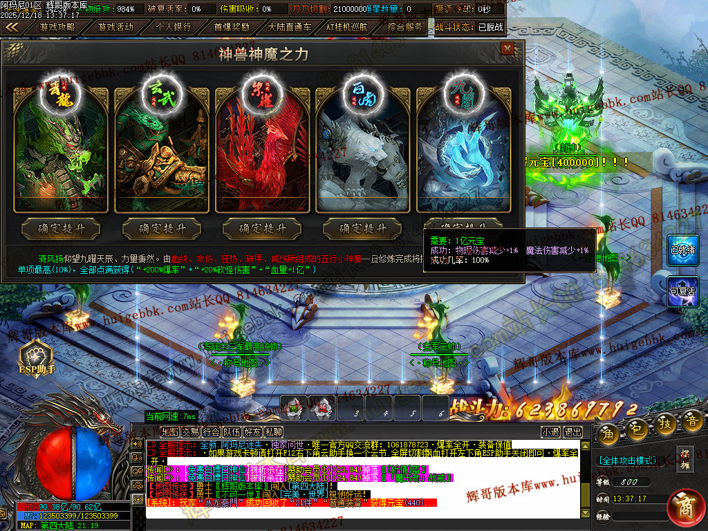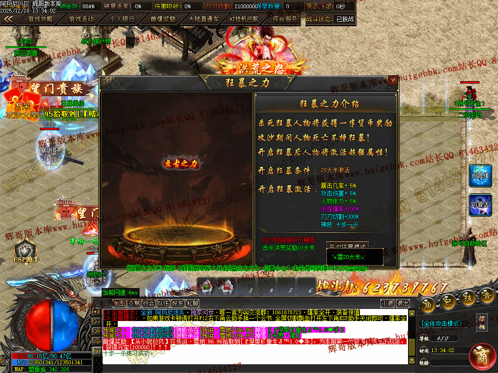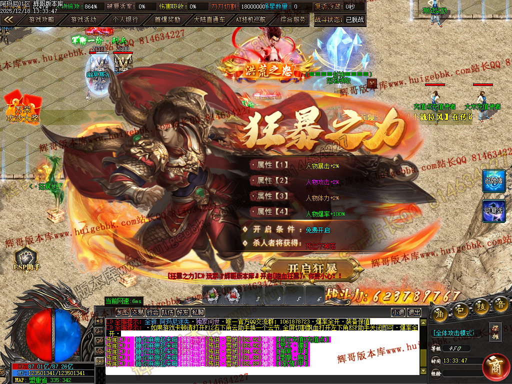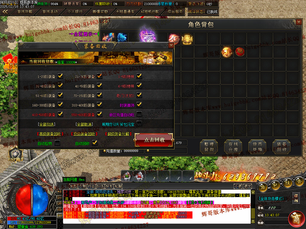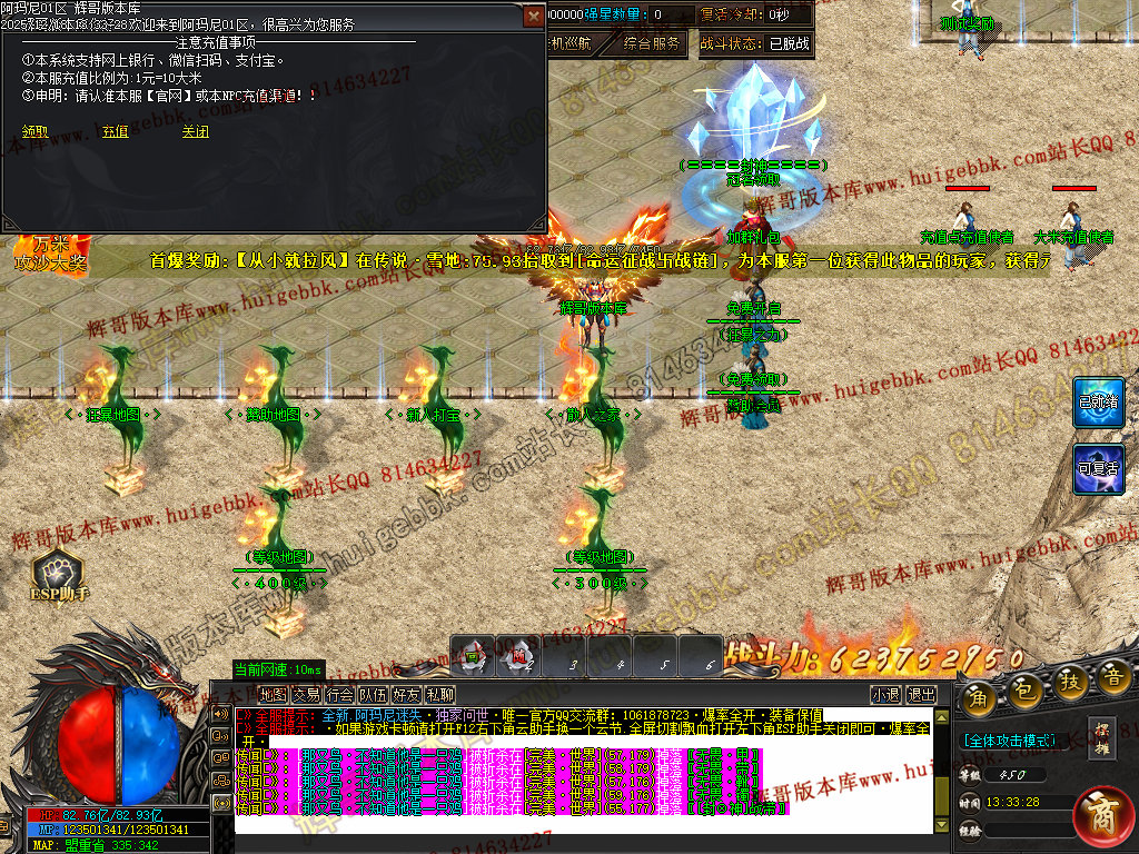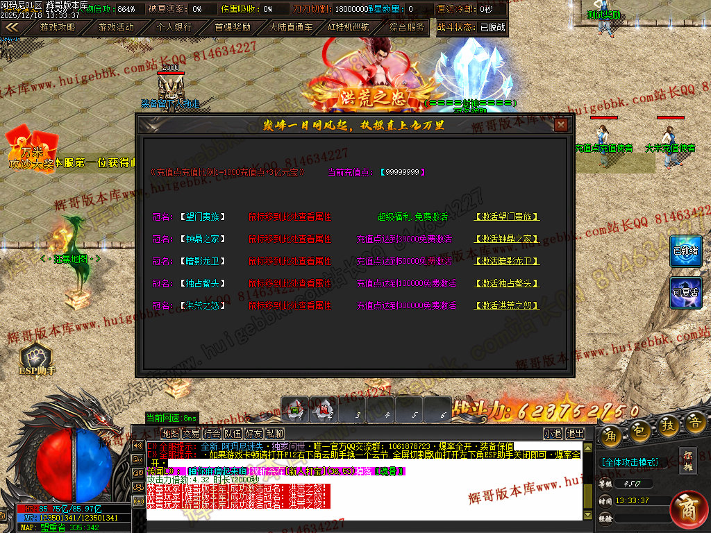 激情一档:充值32大米开启狂暴十级+盘古之力赠送:5倍元宝回收+1000倍爆率+10倍神力+全屏吸怪