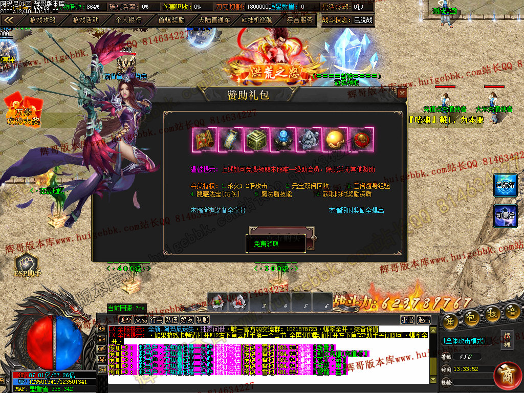 新人上线送:自动拾起+自动回收+狂暴+会员+满切割+自动挂机