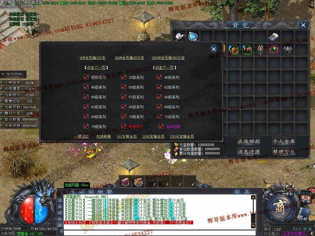 1.游戏设置了【散人背包神器】在线可以获得任何物品