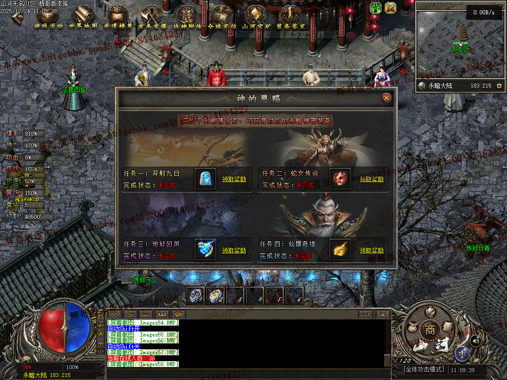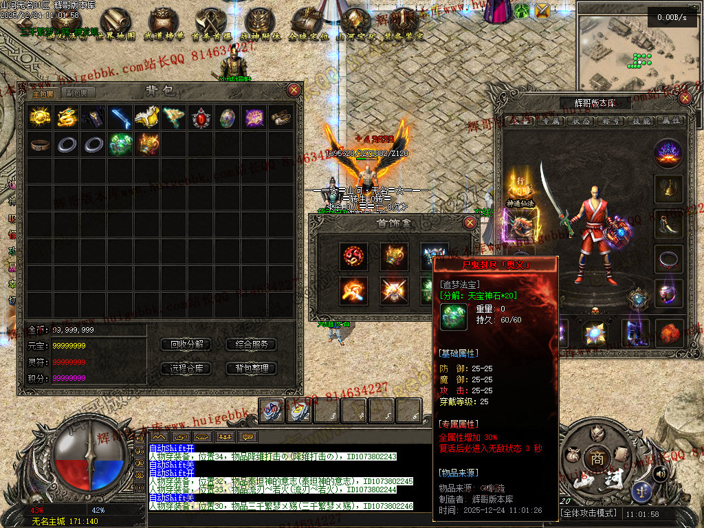 激活三个神级仙法(紫色):获得人物等级*1000点切割伤害 (起号必备,打怪效率直接提升20倍,体验感拉满!)