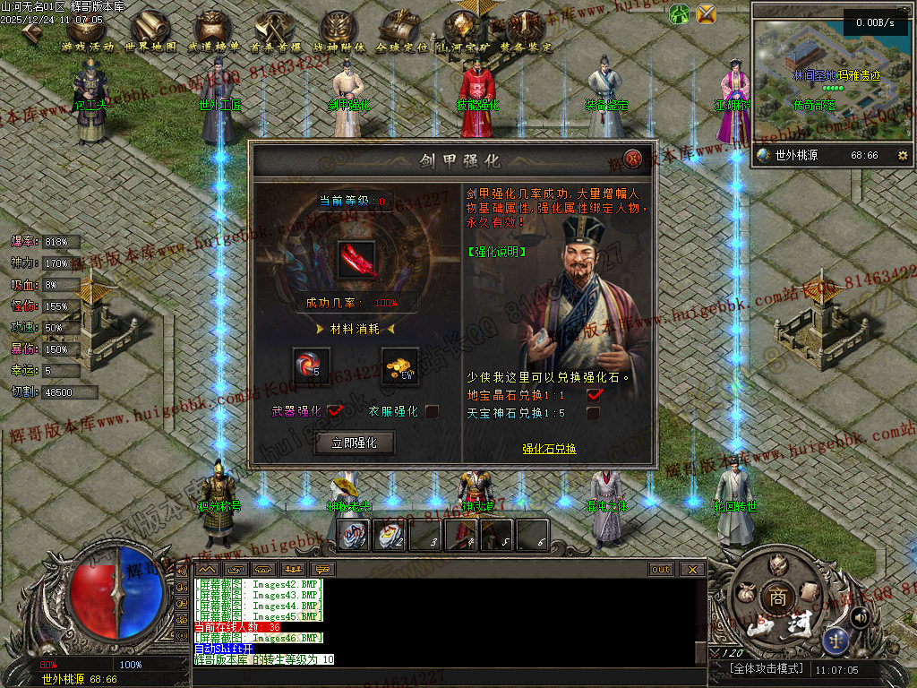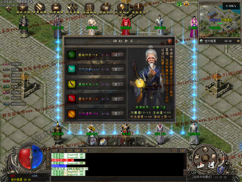 1. 进入世外桃源后可在【传奇部落】、【自然洞穴】、【林间圣地】、【月迷宫】路线更新制式装备,顺便把神秘老头任务完成,提升基础属性