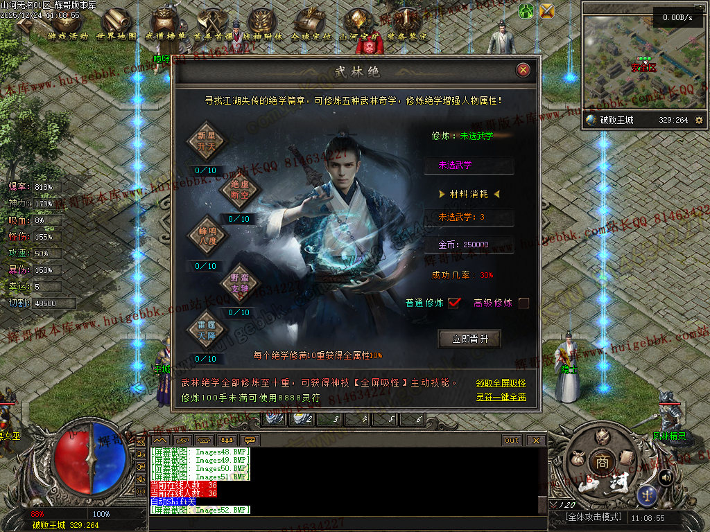 2. 武林绝学全部修炼至十重,可获得神技【全屏吸怪】主动技能。