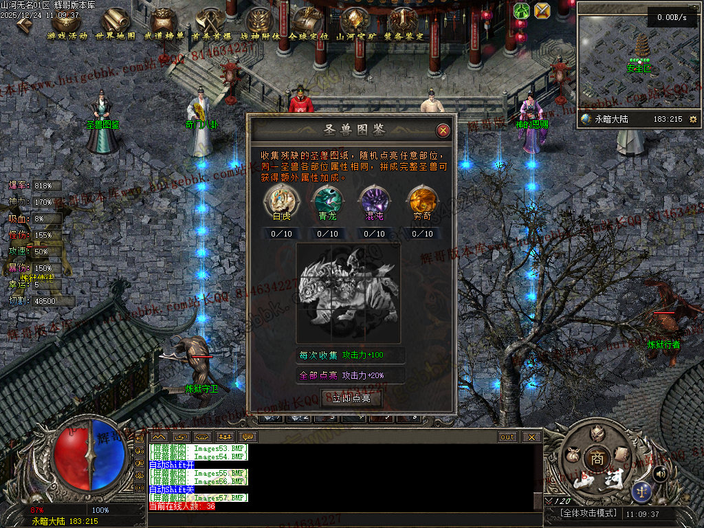 对怪伤害+10%、攻击吸血+3%、真实爆率+20%、自动挂机