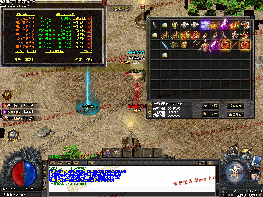 版本介绍本服为1.76纯复古三职业版本,小极品可回收充值,喝药免费、地图免费、挂机免费、回收免费,散人打金的天堂,骨灰激情的海洋
