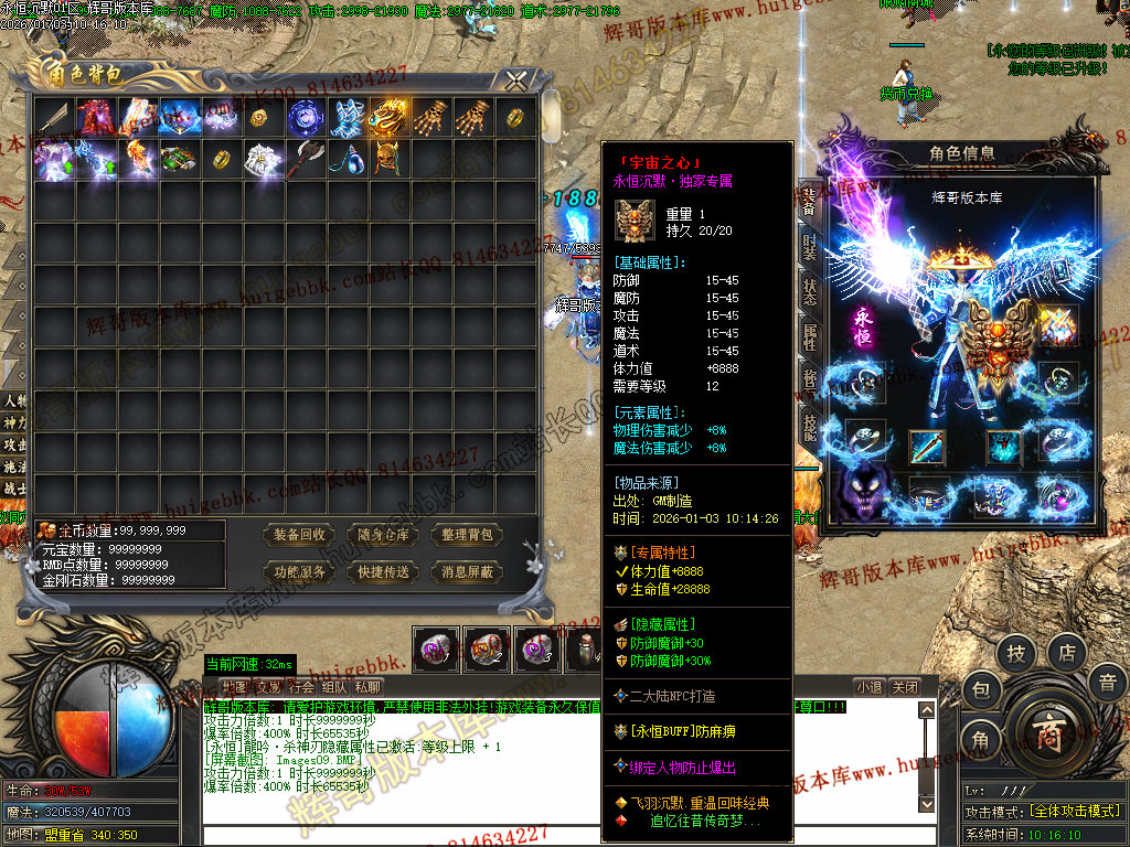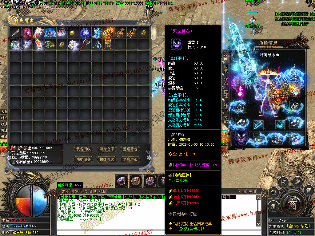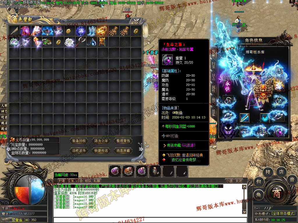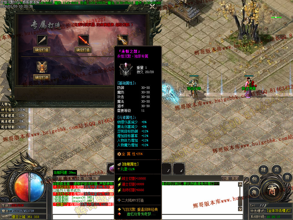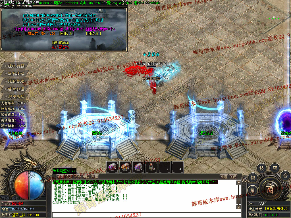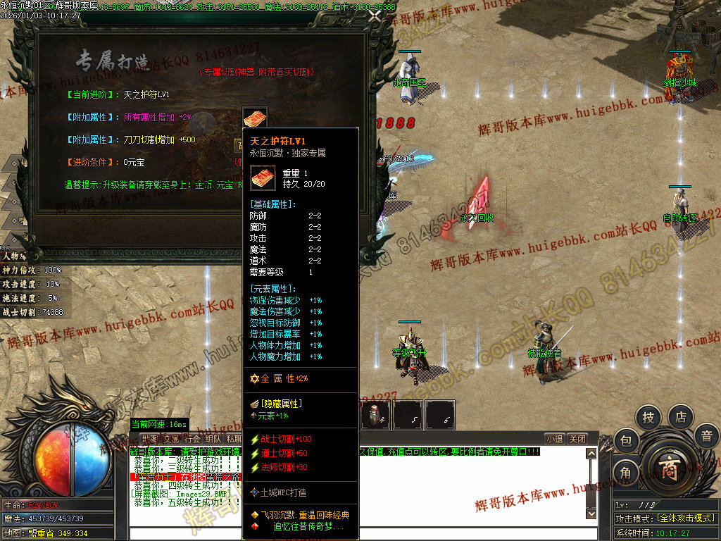 折扣商城购买元宝,合成血石和护符(附加传送和切割属性)