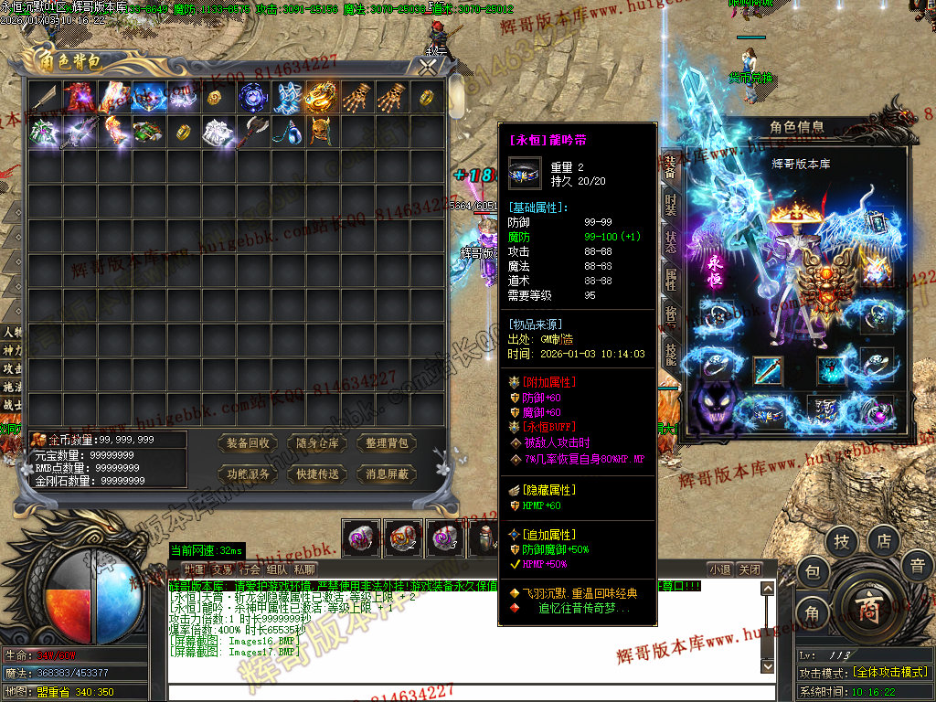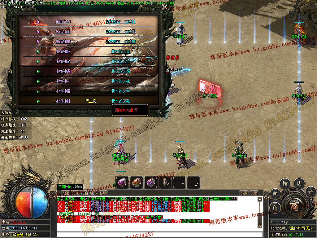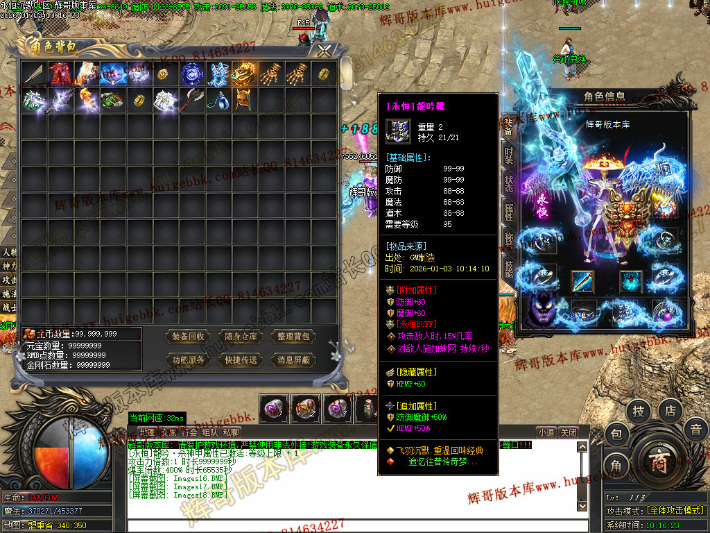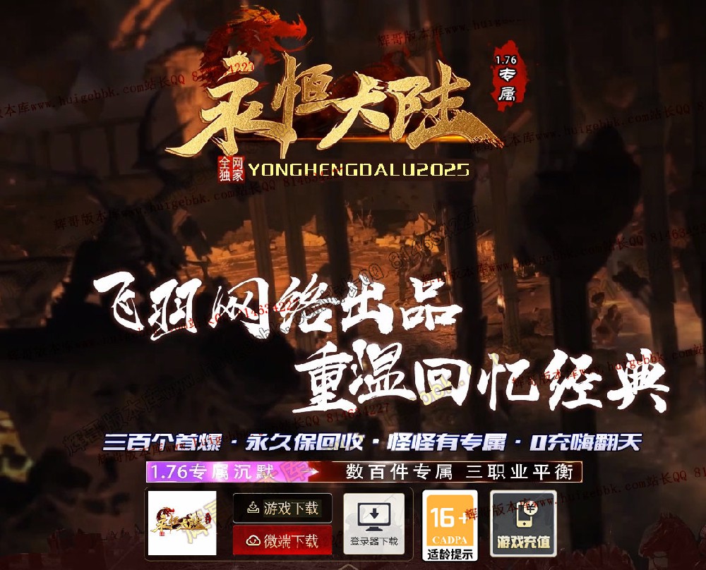 本服承诺:装备材料货币全可打到,装备元宝不售卖,全靠自己打!
