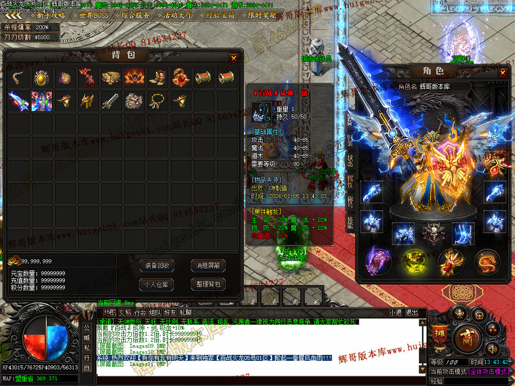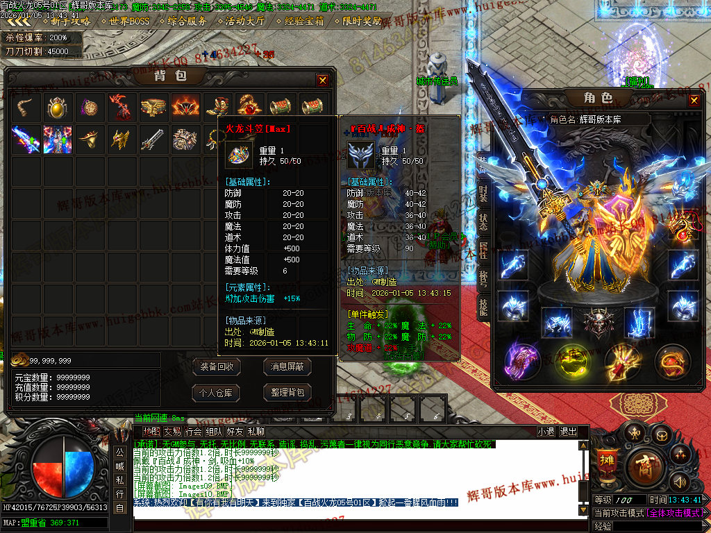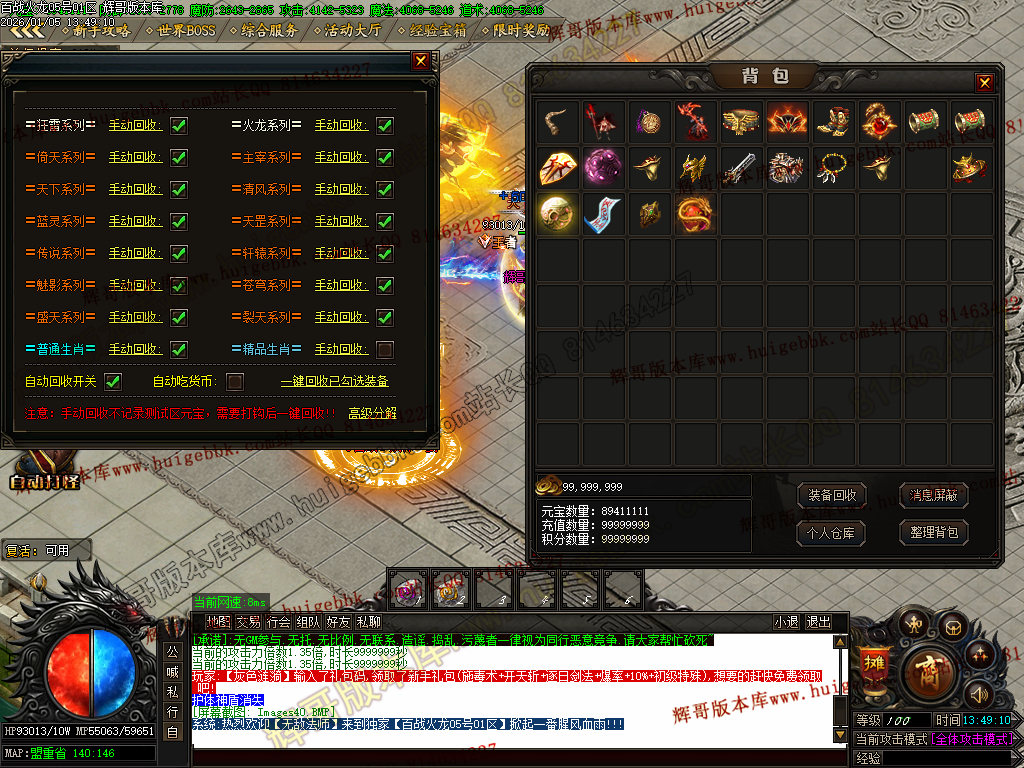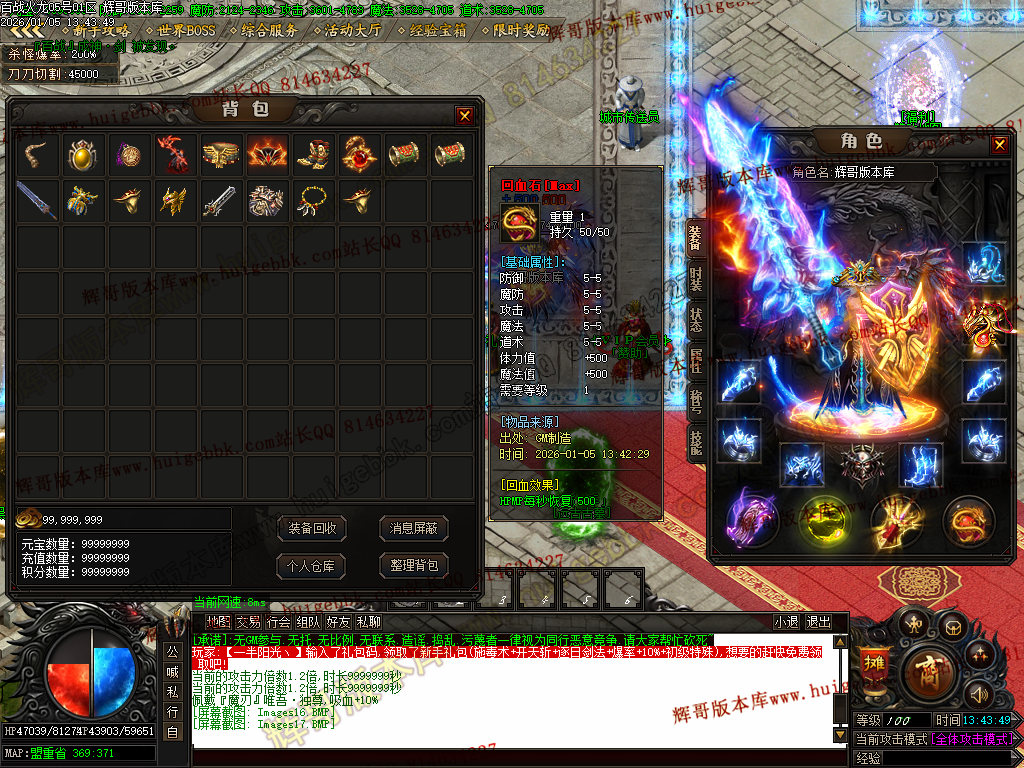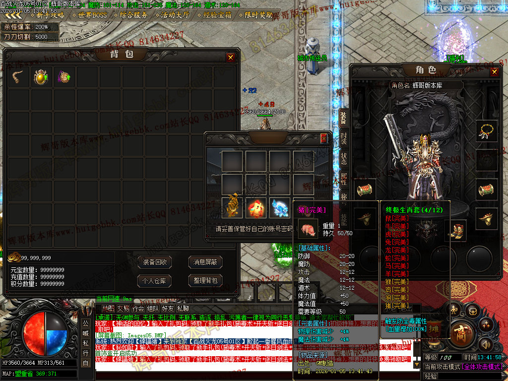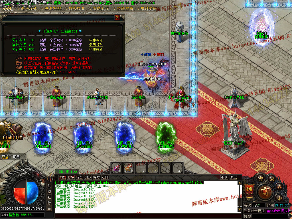 {充值500块元宝,免费领取满称号,全屏吸怪,转生10重.爆率额外+300