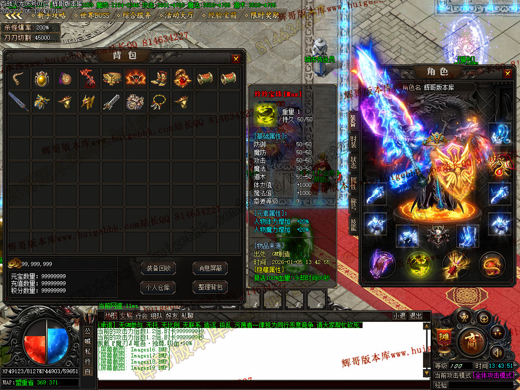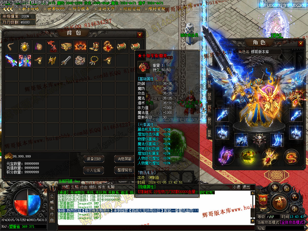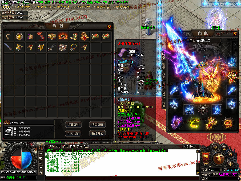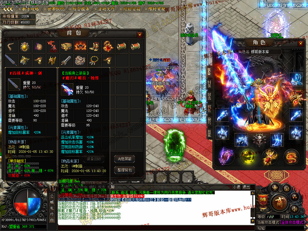 {满称号几率切割怪物5%血量,打怪爆率+50%.还有专属地图,爆率超高!