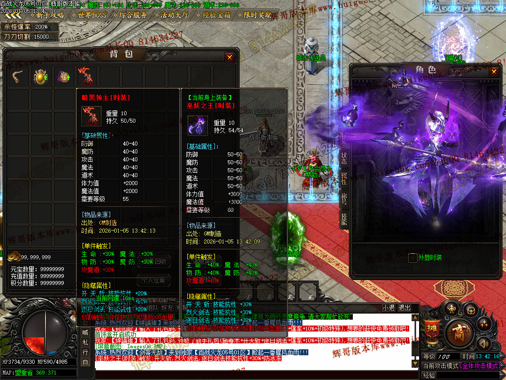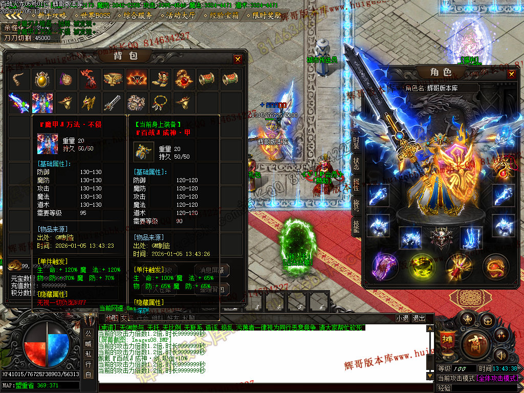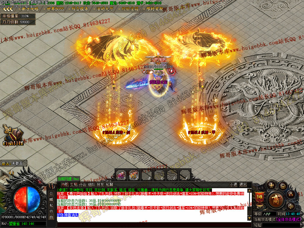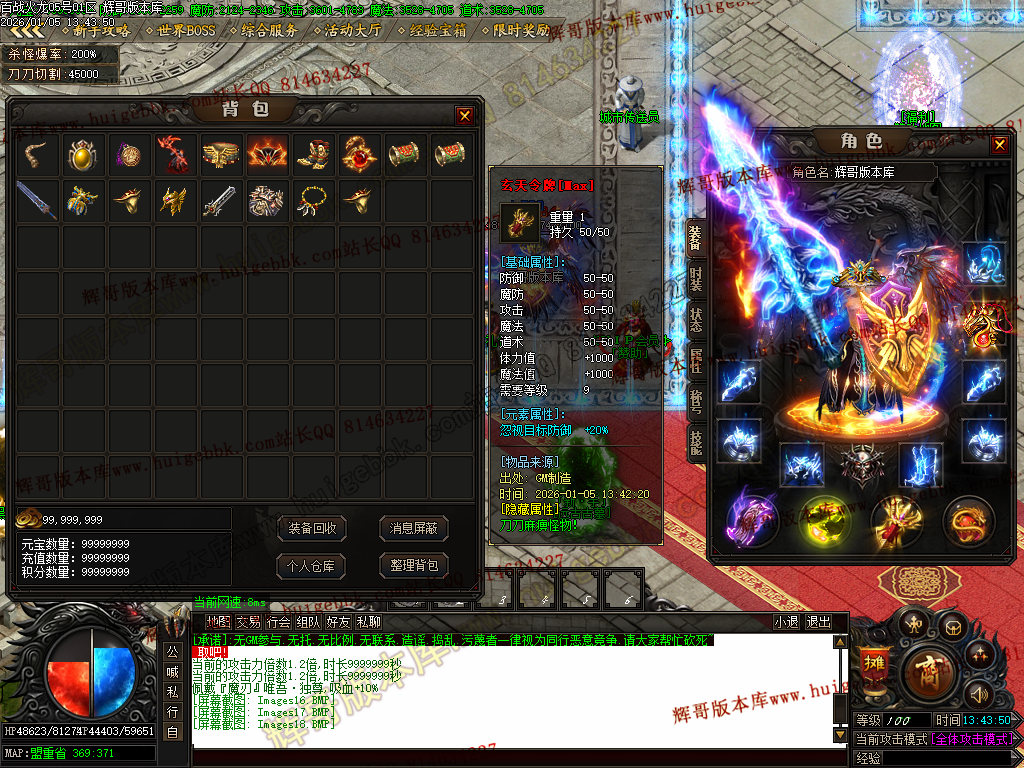 {满称号几率切割怪物5%血量,打怪爆率+50%.还有专属地图,爆率超高!