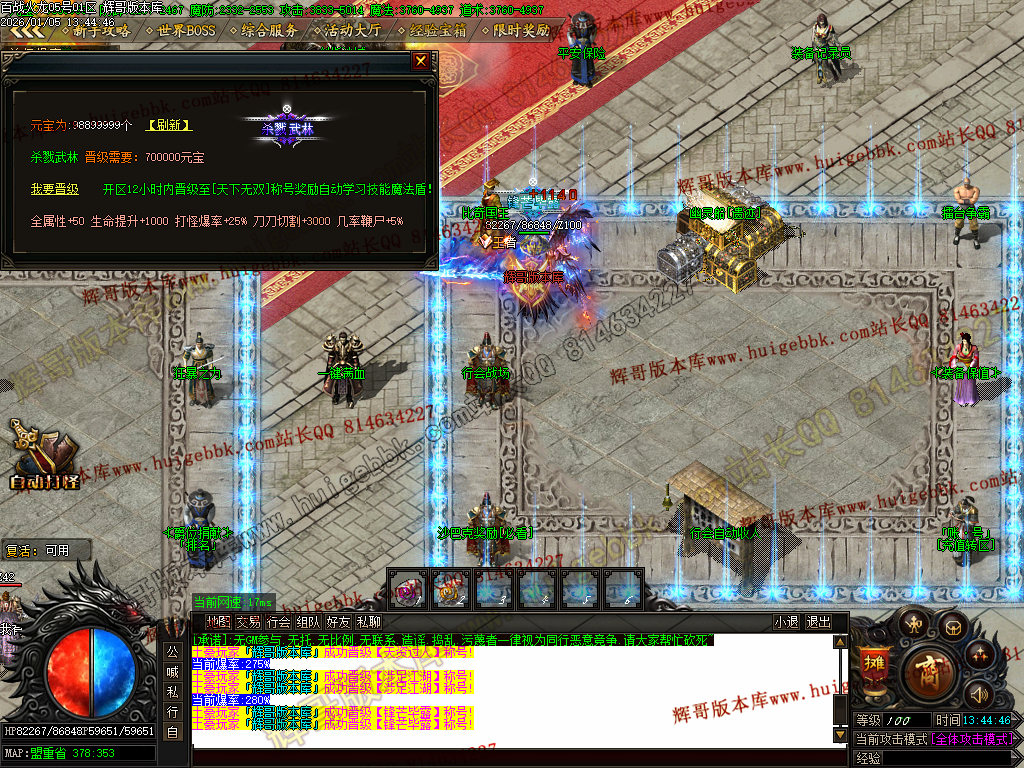 {新区福利活动必须参加,元宝送不停,获得元宝之后开启狂暴和升级称号