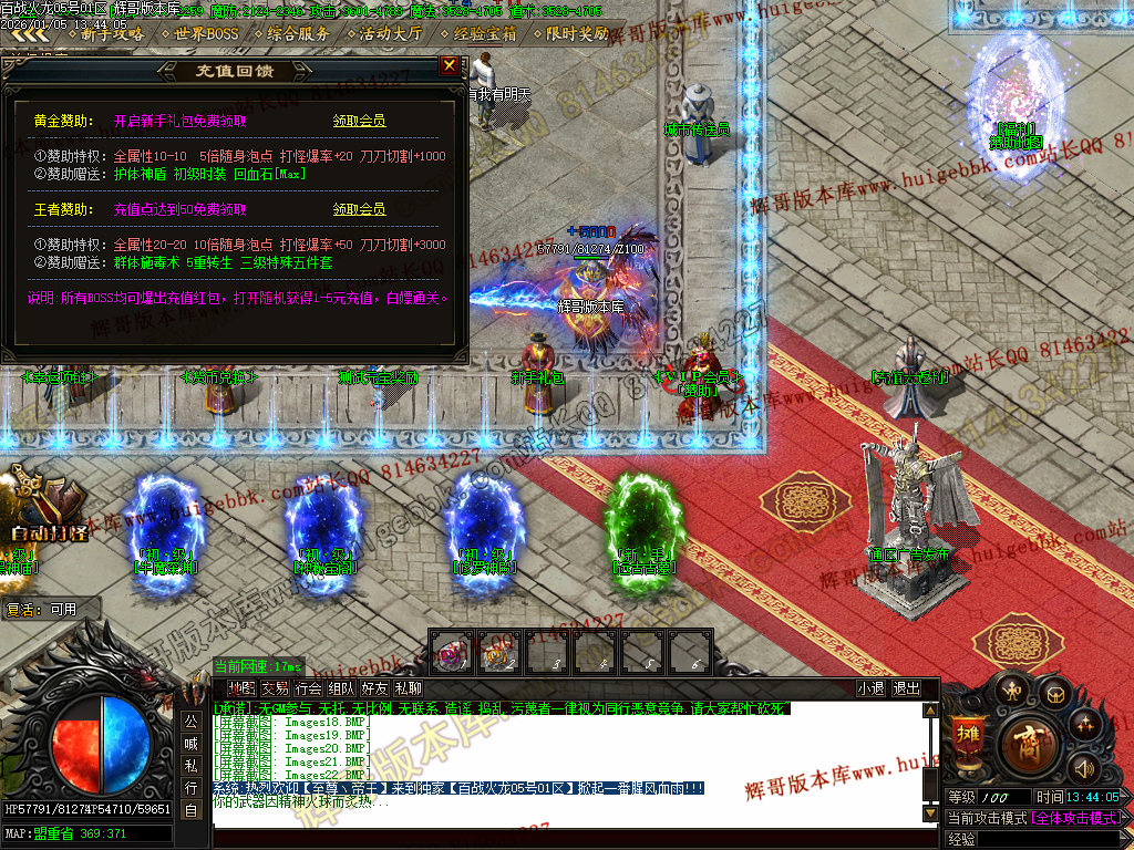 {本服无沙捐,攻沙奖励红包,赞助可打,所有装备不限制爆率,打到好装备还可以卖给老板