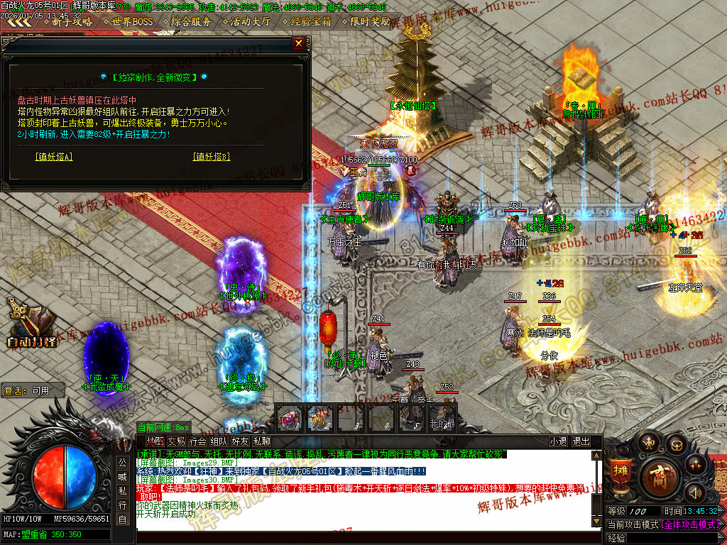 {永恒仙塔爆率高,经验高,升级快,建议双开,小号挂机打元宝,大号手动刷。